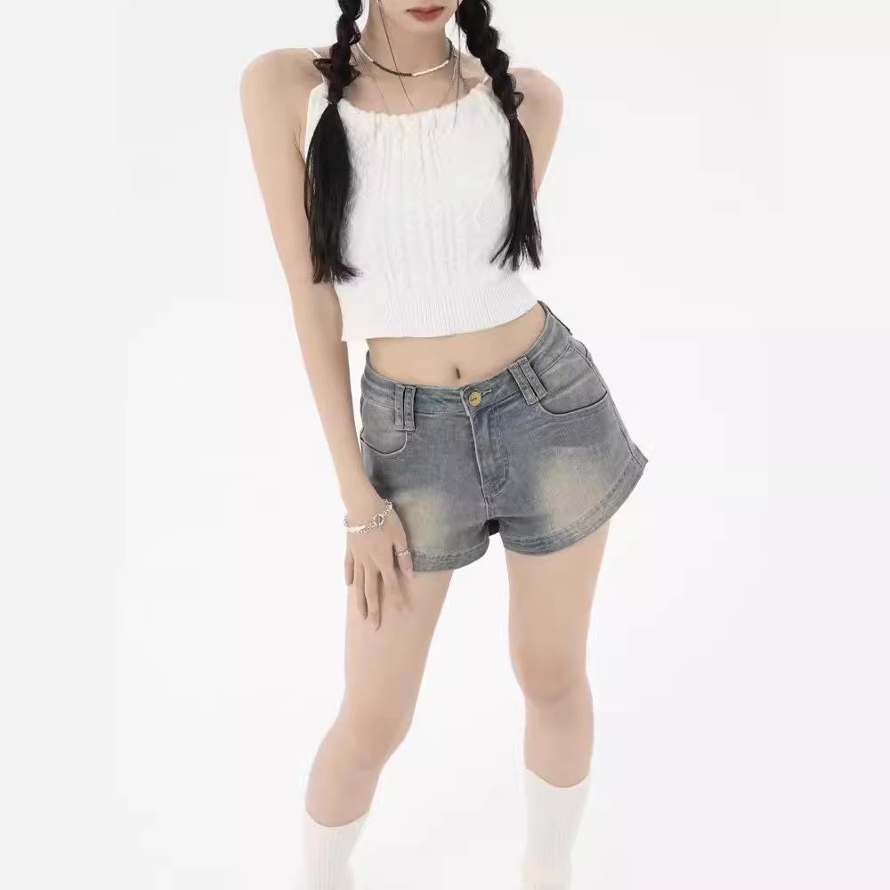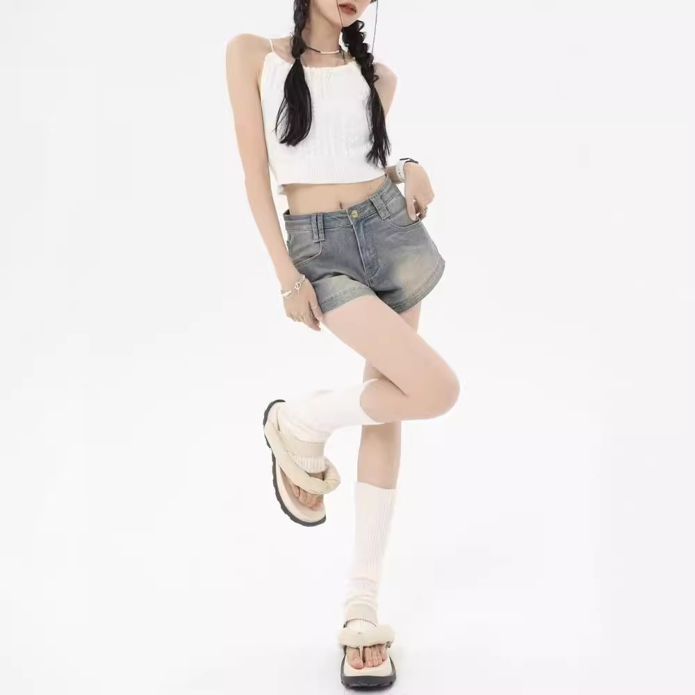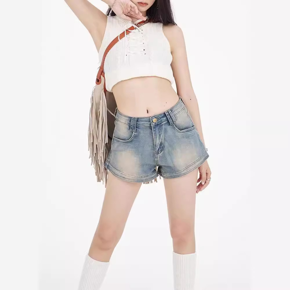 | nameOriginal | European and American Retro Simple Denim Shorts Women's 2024 Summer New All-match Slim Look High Waist Fashion Trendy Pants |