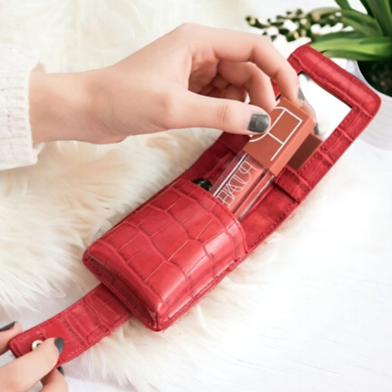 | nameOriginal | European and American retro style fashion mouth red envelope crocodile pattern PU leather lip glaze storage bag with cosmetic mirror mouth red envelope |