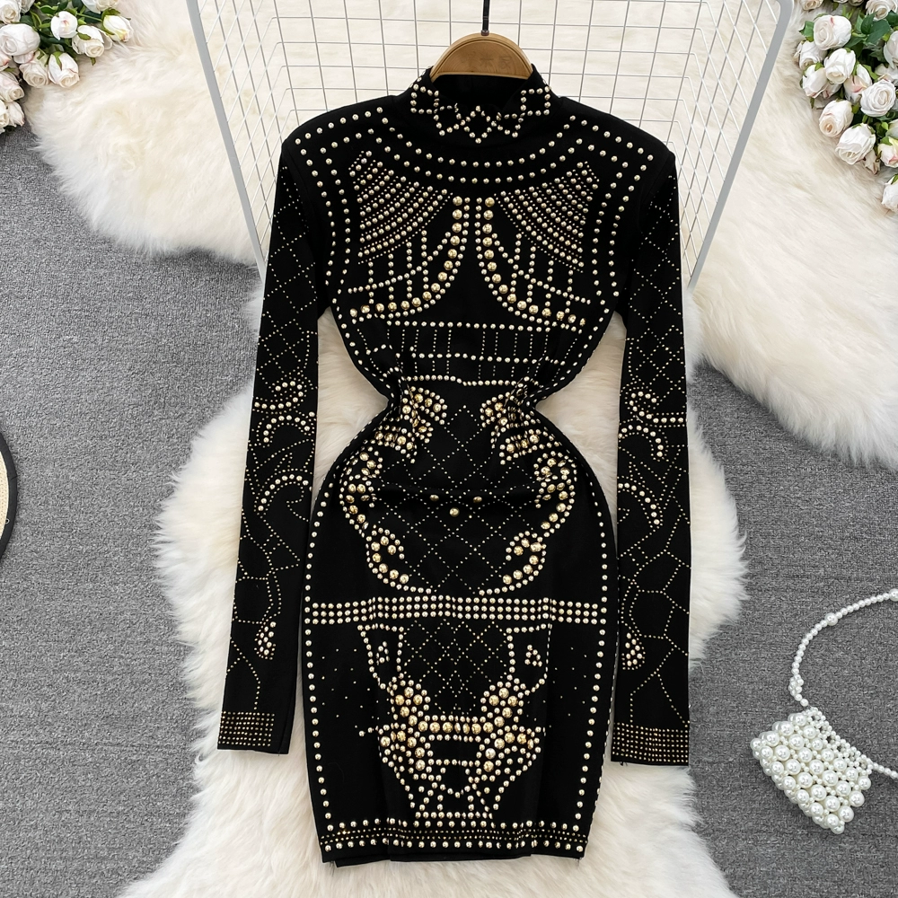 European and American retro style stand-up collar diamond dress