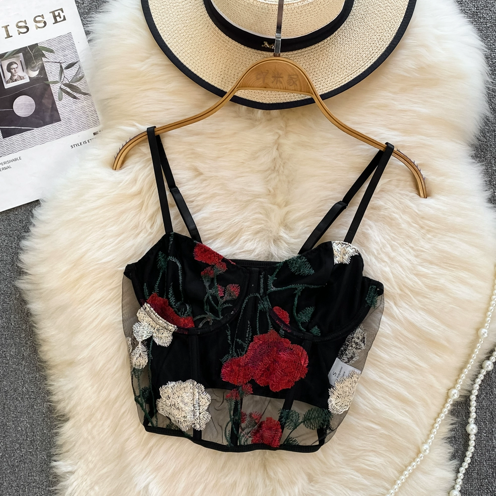 | nameOriginal | European and American retro temperament see-through sexy hot girl camisole women's outer wear embroidered flower fishbone tube top summer |