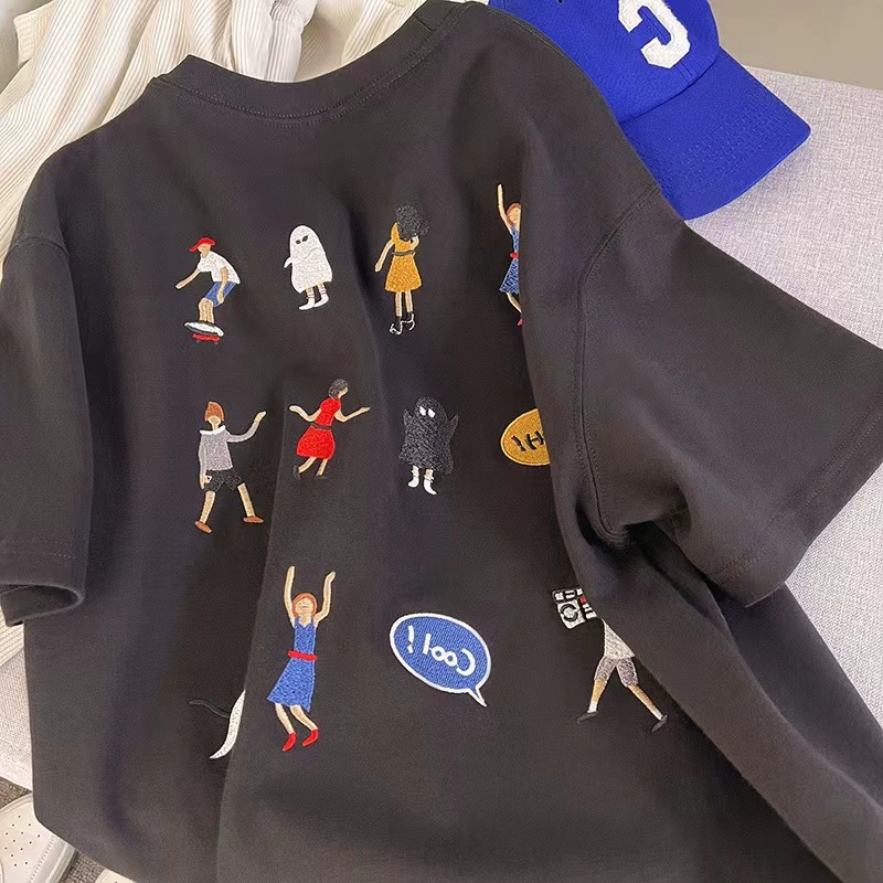 | nameOriginal | European and American retro vintage embroidered T-shirt women's short-sleeved summer design niche loose half-sleeved Hong Kong style chic top |