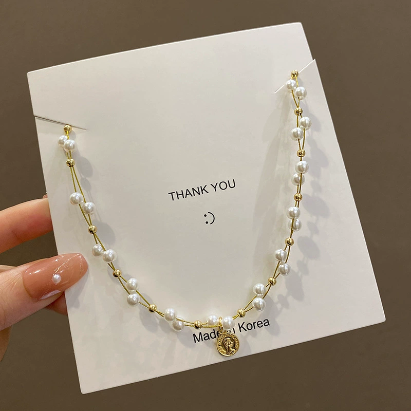 | nameOriginal | European and American retro winding pearl necklace for women, niche cold style design, portrait pendant, simple and versatile accessories |