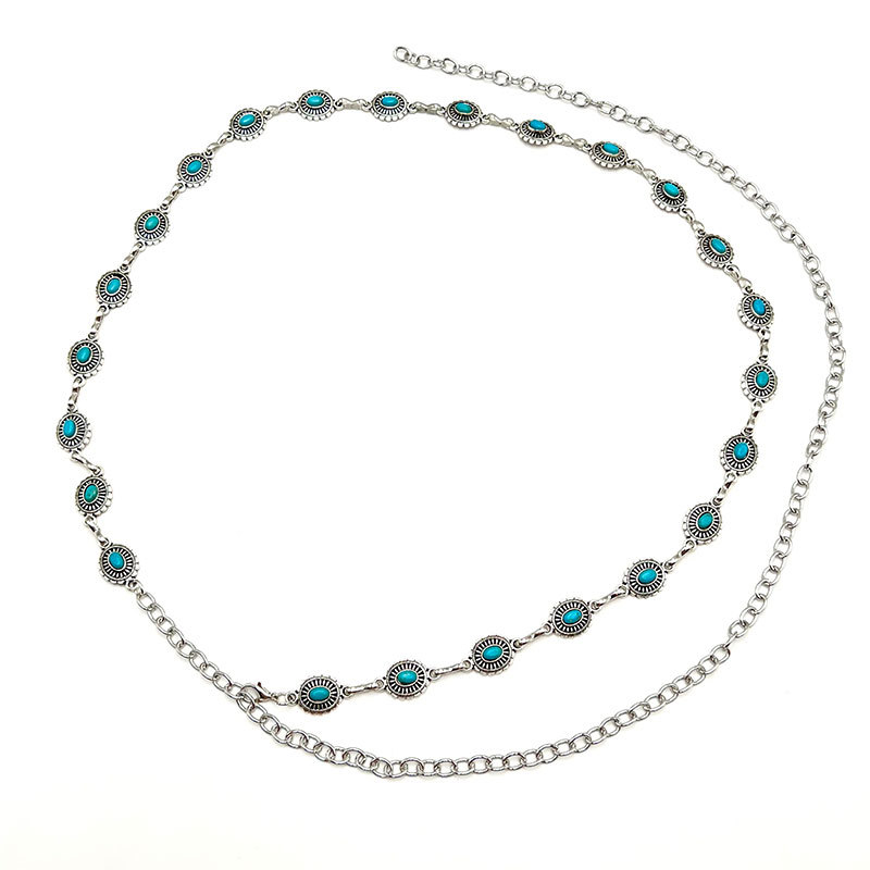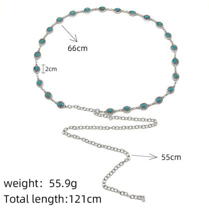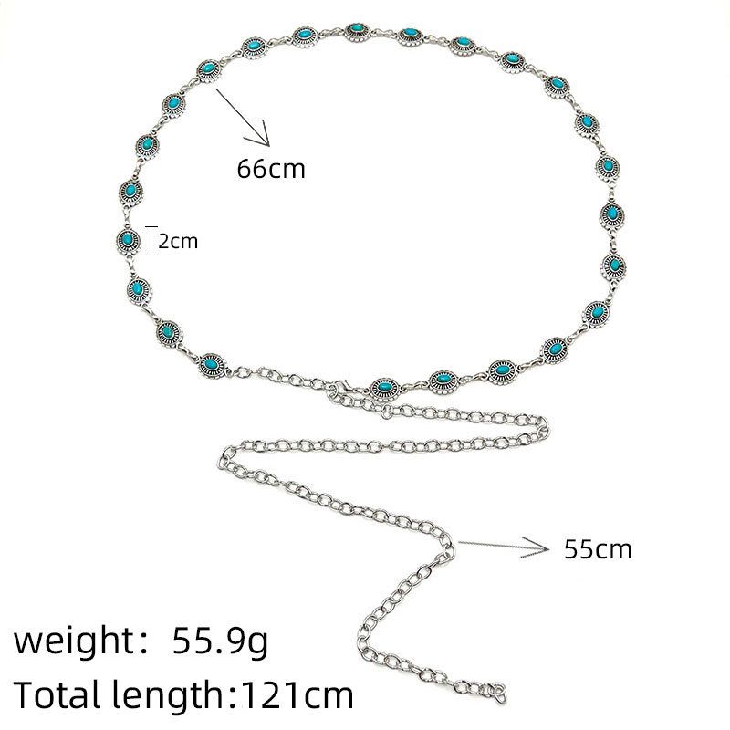 | nameOriginal | European and American round turquoise waist chain women's fashion all-match bohemian Retro alloy handmade pants chain jewelry |