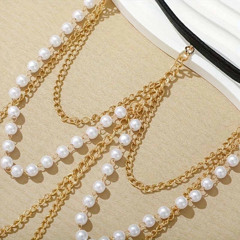 | nameOriginal | European and American sexy beach imitation pearl thigh chain female blingbling geometric tassel body chain rhinestone metal |