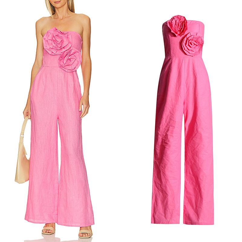 | nameOriginal | European and American Sexy Socialite Light Luxury 2024 Summer New Strapless Wide-leg Pants Three-dimensional Flower Stitching Pants for Women |