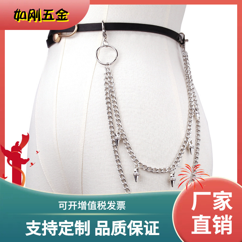 European and American Simple Fashion Style Waist Chain Pant Chain Cross-border All-match Double-layer Chain Bullet Pendant Decoration