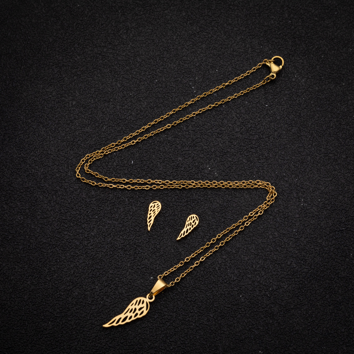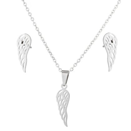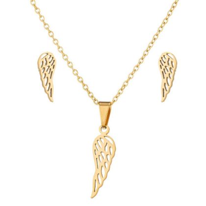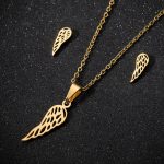 | nameOriginal | European and American simple female temperament new stainless steel angel wings feather personality pendant necklace earring two-piece set |