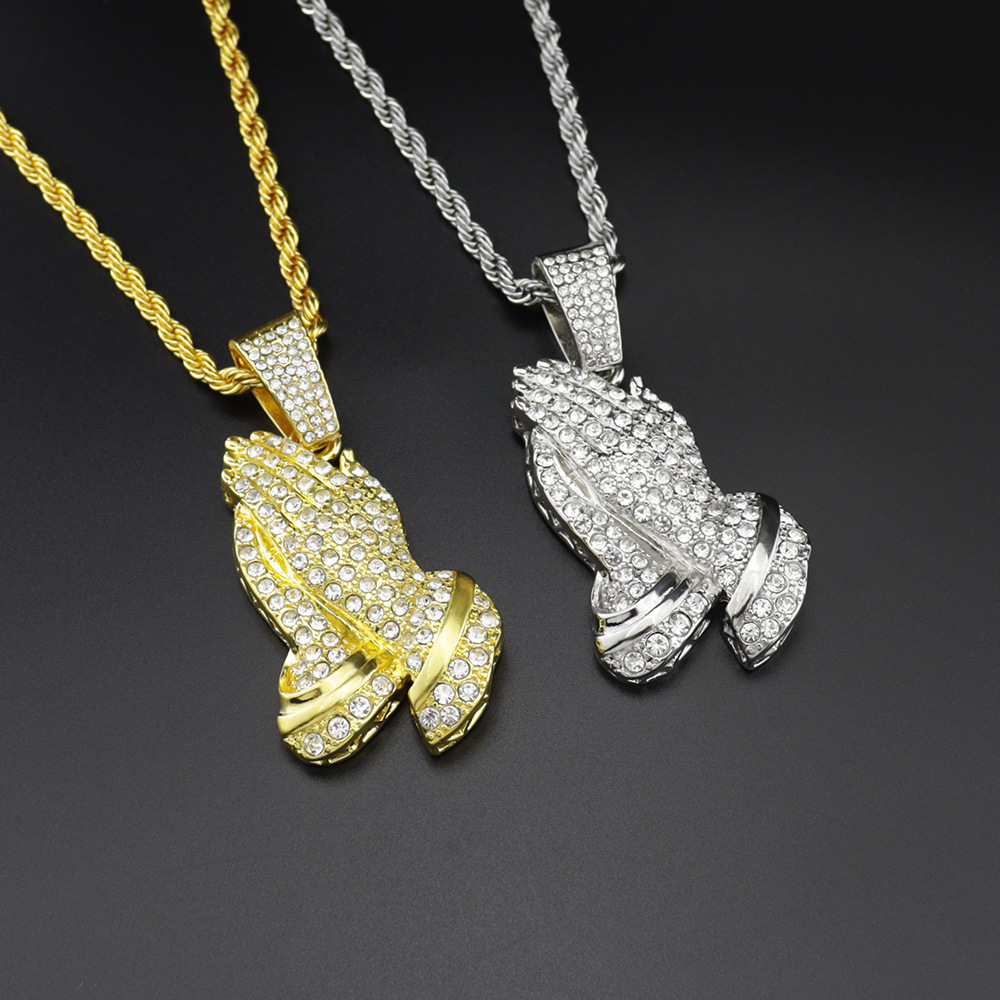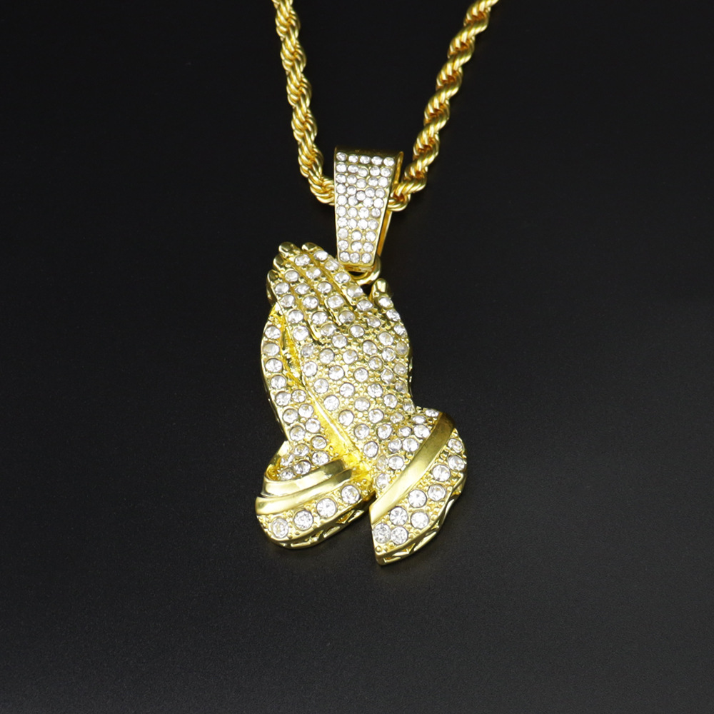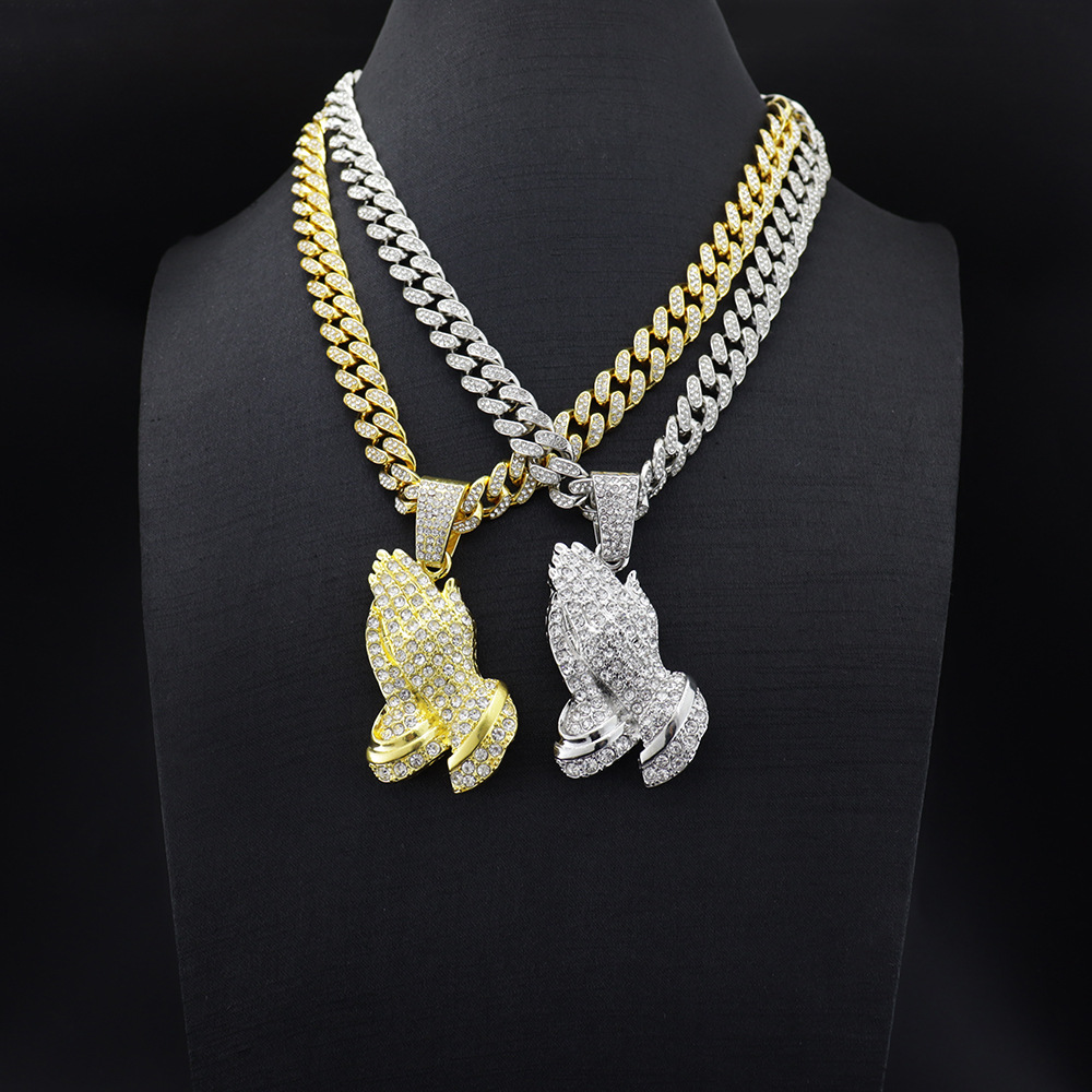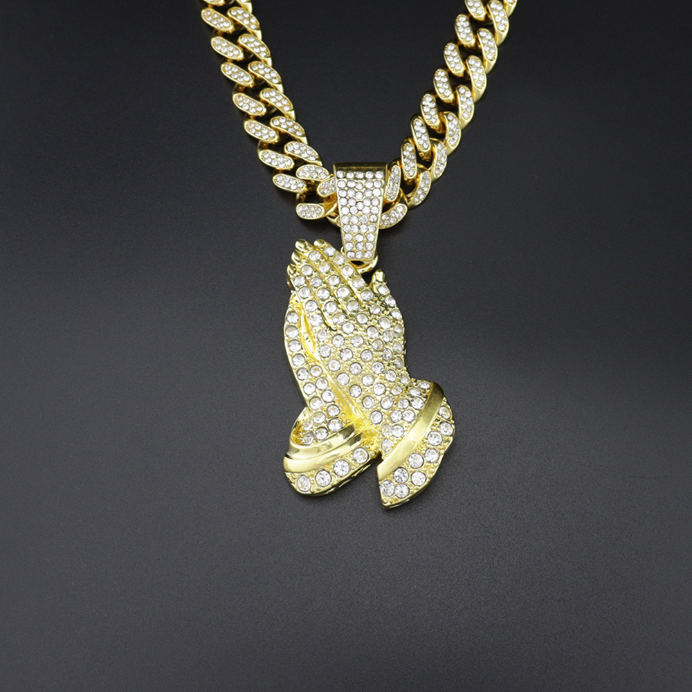 European and American simple internet celebrity style retro hipster diamond alloy necklace hip hop necklace men's hiphop Buddha hand pendant