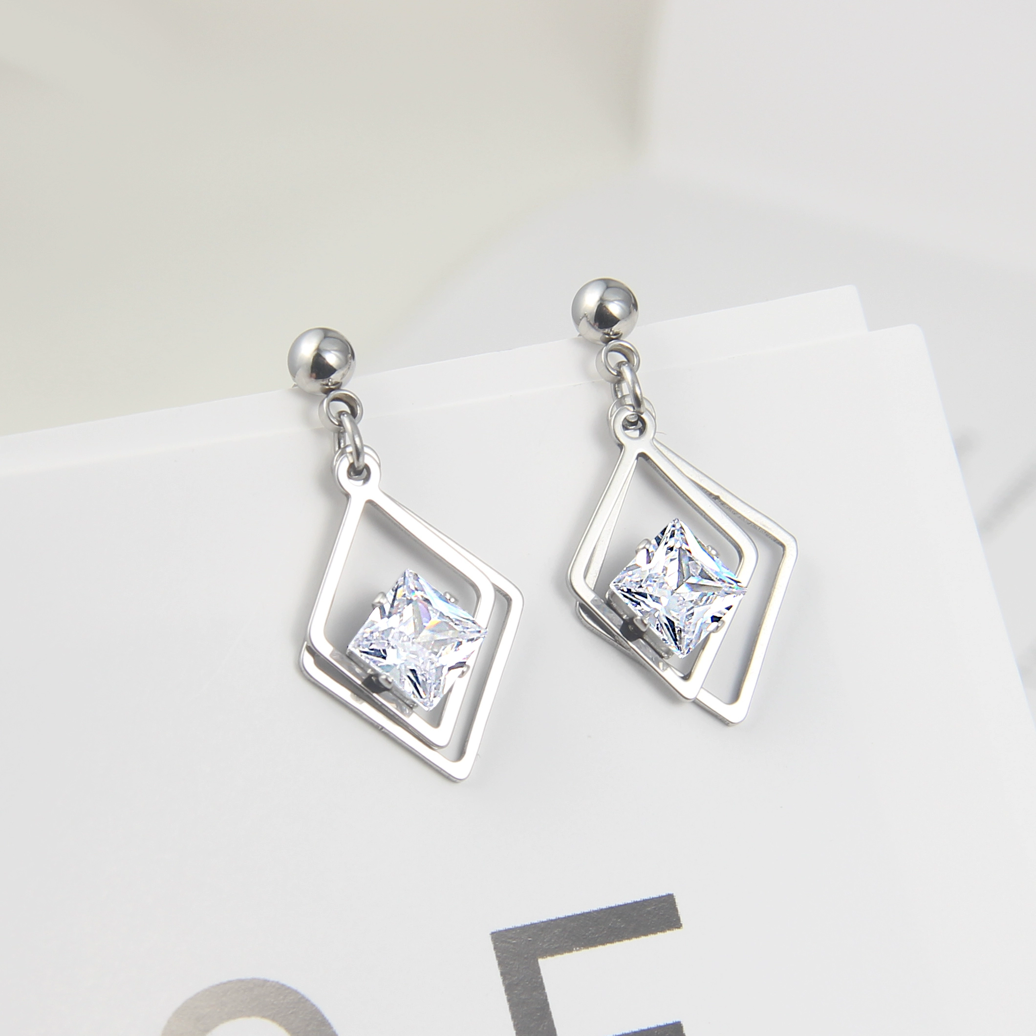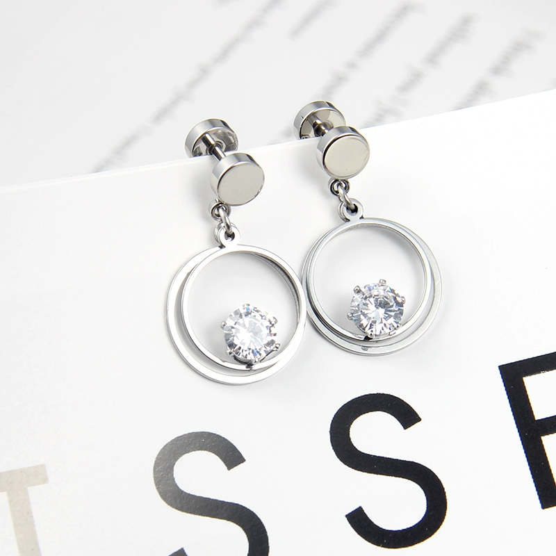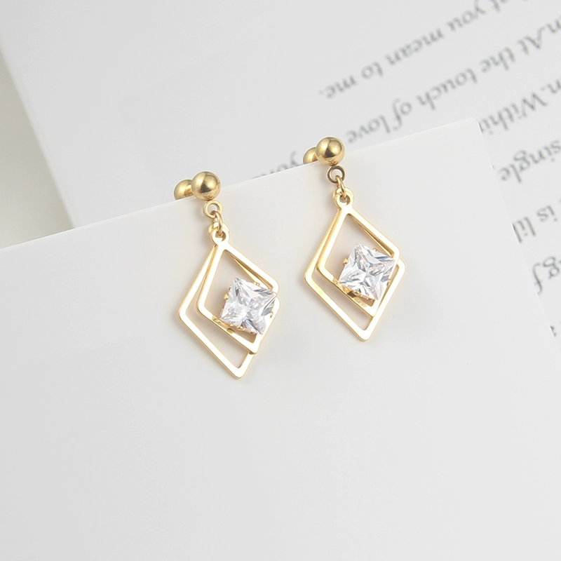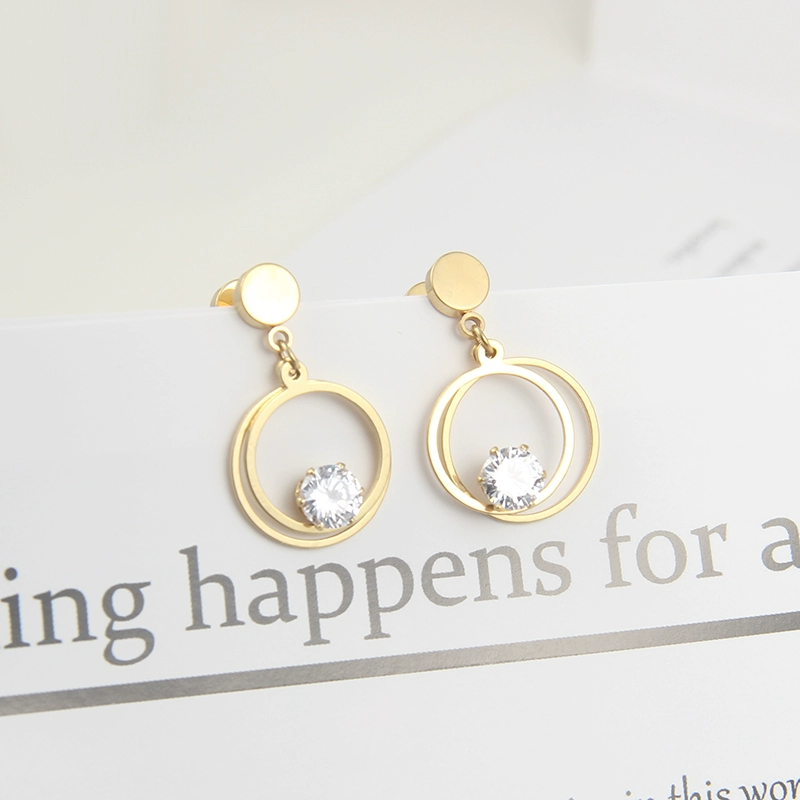 | nameOriginal | European and American simple long titanium steel zircon earrings Korean golden temperament personalized earrings earrings triangle round jewelry |