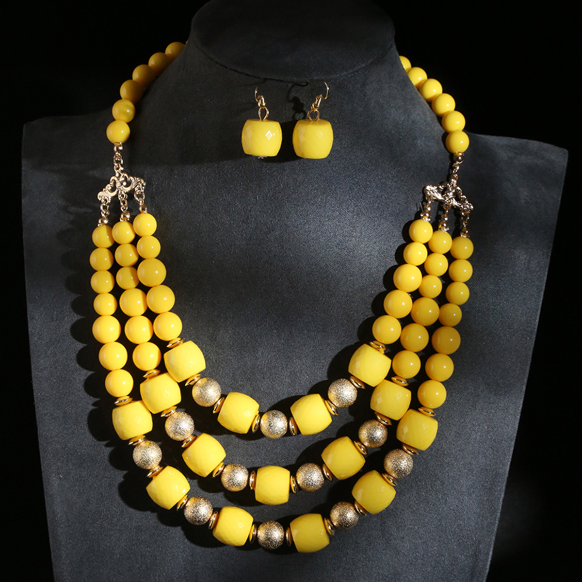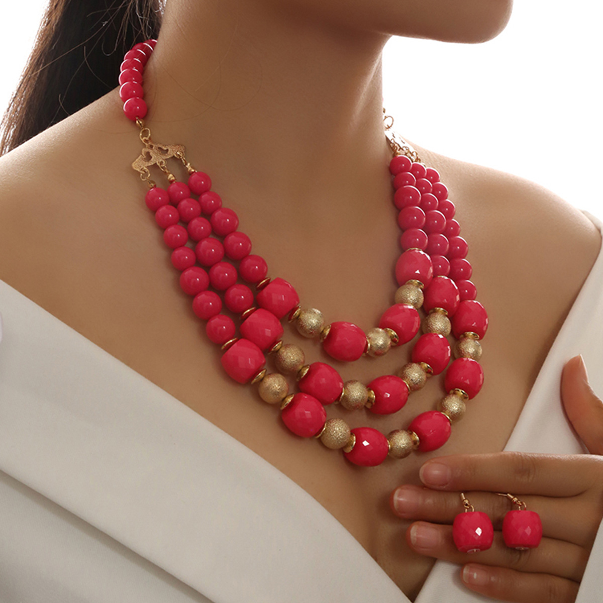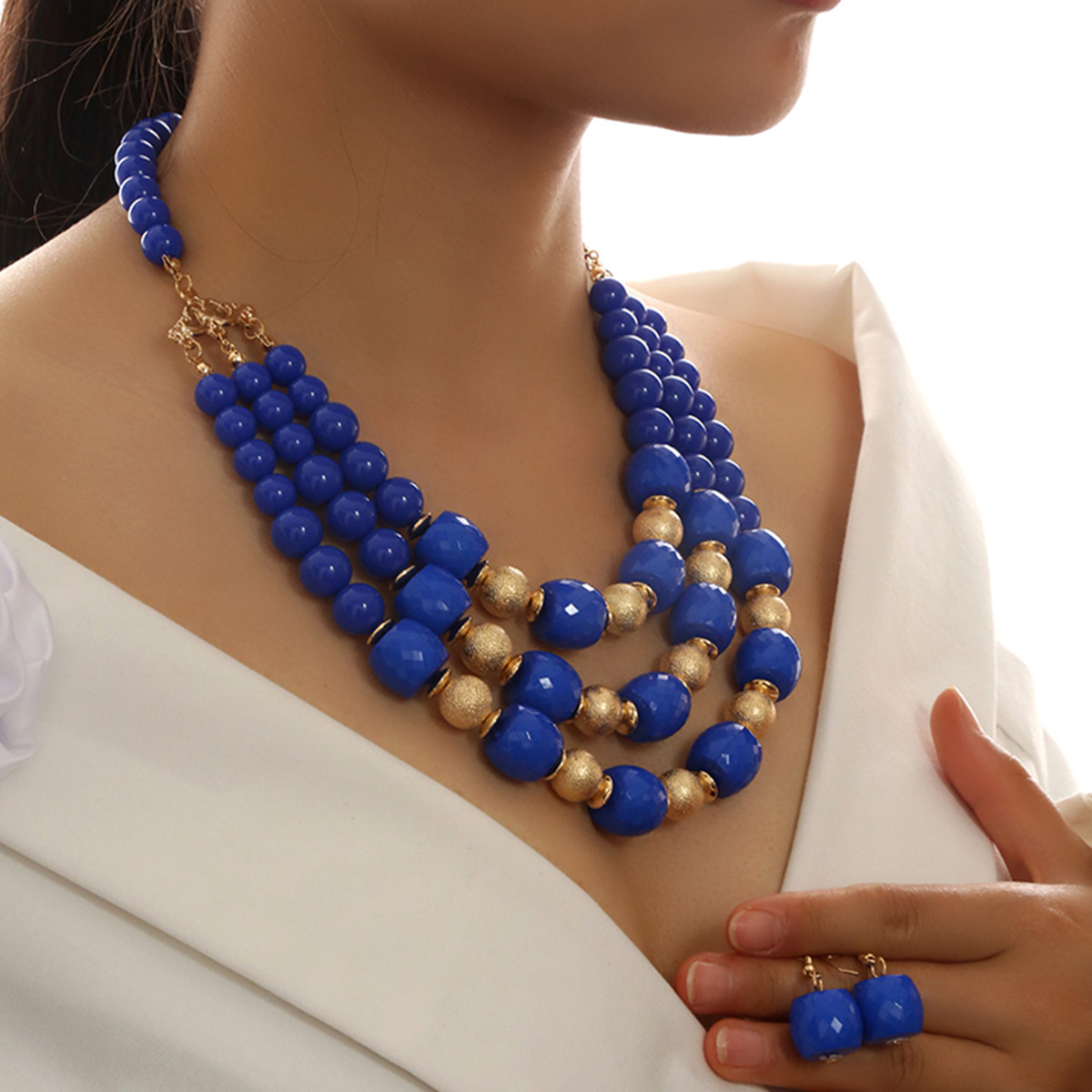 | nameOriginal | European and American Simple Round Bead Atmospheric Earrings Necklace Resin Two-piece Jewelry Golden Frosted Beads Multi-layer Beaded Necklace |