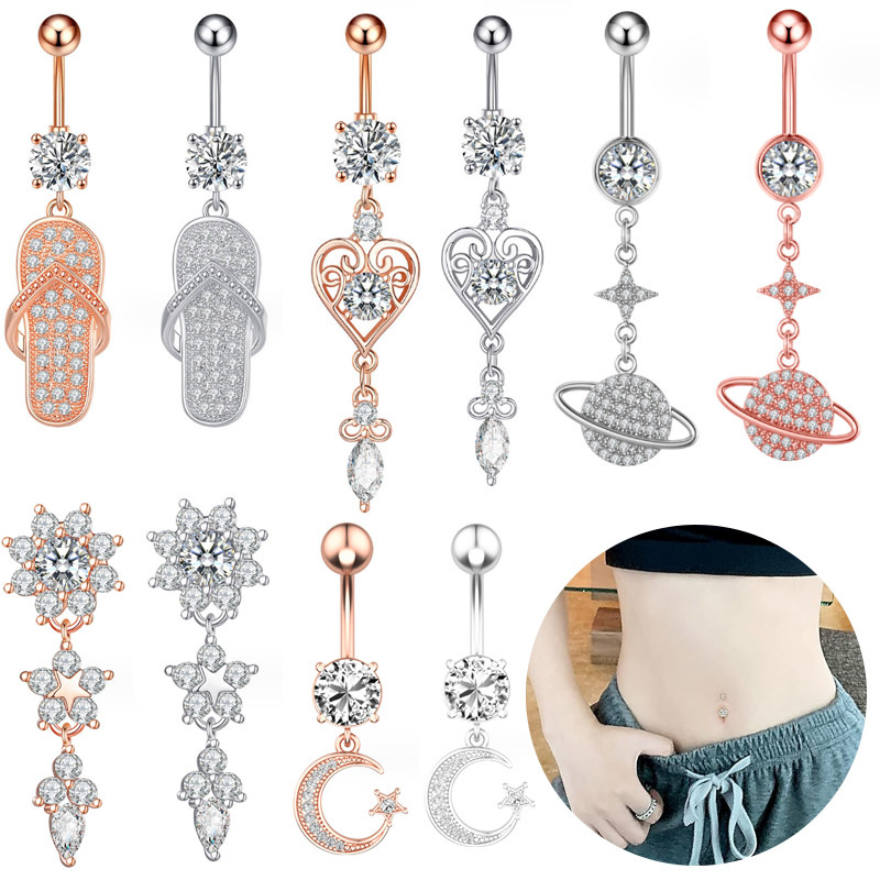 | nameOriginal | European and American simple stainless steel navel ring pendant moon zircon anti-allergy belly dance thick needle navel nail piercing jewelry |