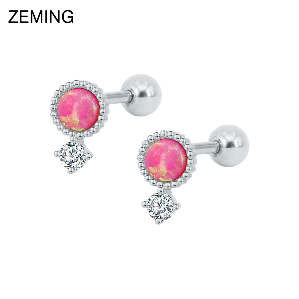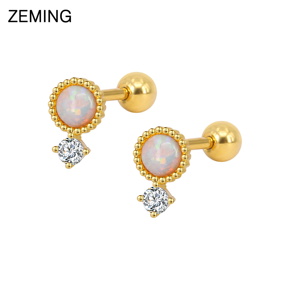 | nameOriginal | European and American simple stainless steel round Opal stud earrings Opal titanium steel screw piercing earrings earrings in stock wholesale |