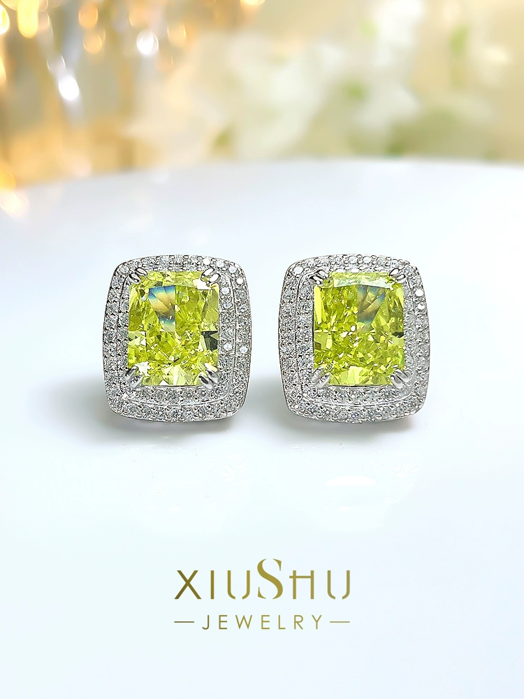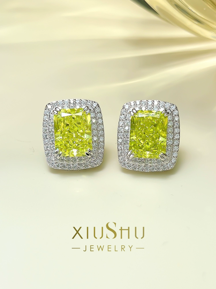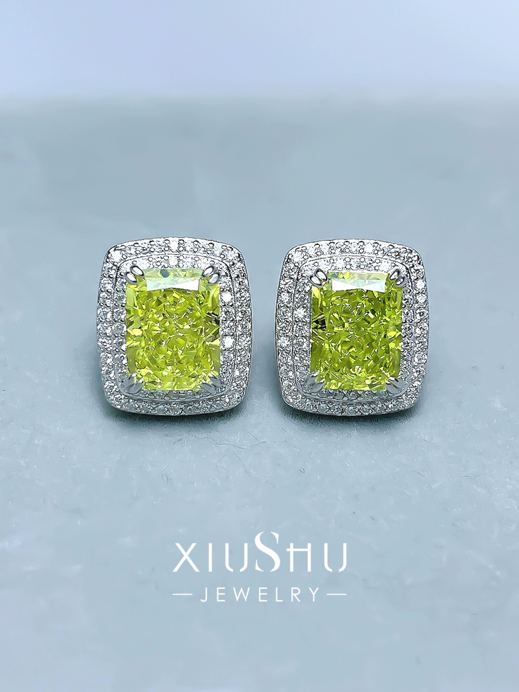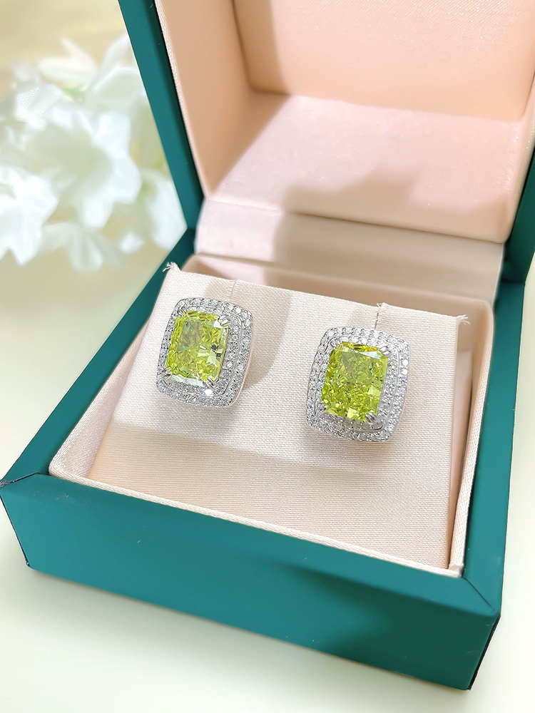 | nameOriginal | European and American sparkling olive green light luxury sterling silver earrings inlaid with imported high-carbon diamond radiant ice-cut and luxurious temperament |
