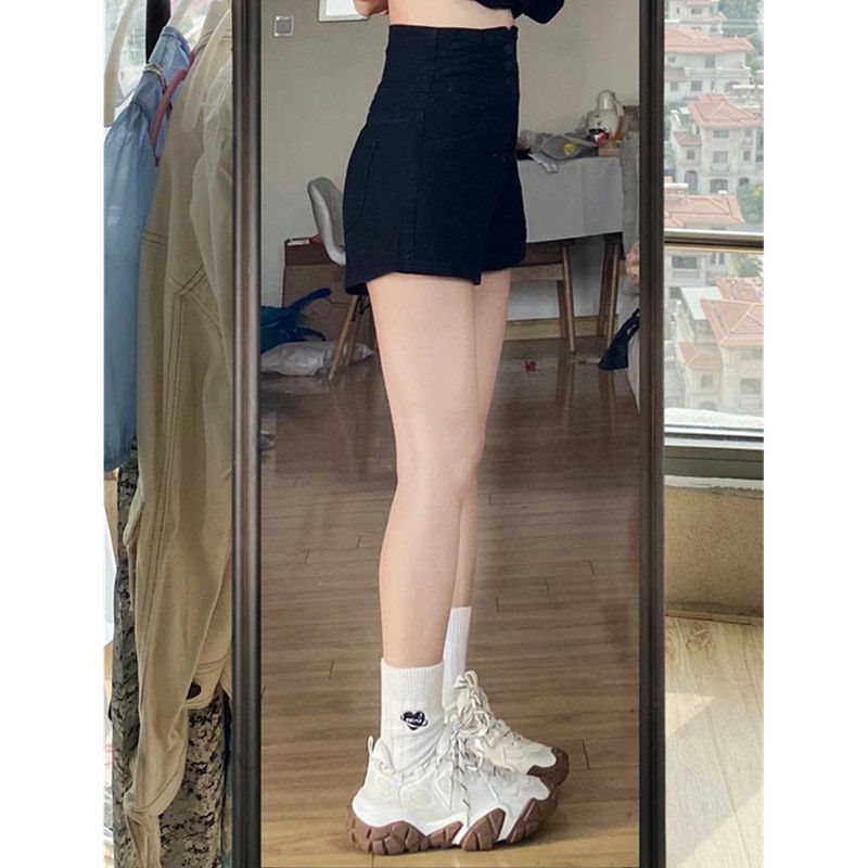 | nameOriginal | European and American Spice Girl Wear Women's Summer chubby girl plus size Loose Slimming Black A- line High Waist Buckle Denim Shorts Ins |