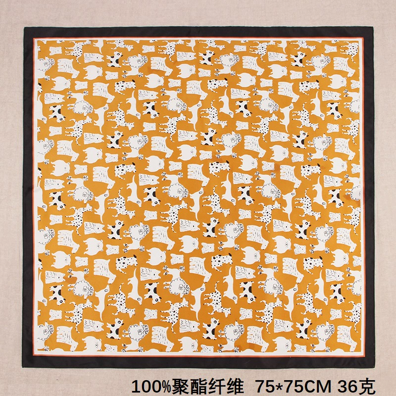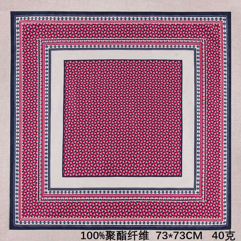 European and American Spring and Autumn Lightweight Navy Blue 75CM Printed Small Square Scarf