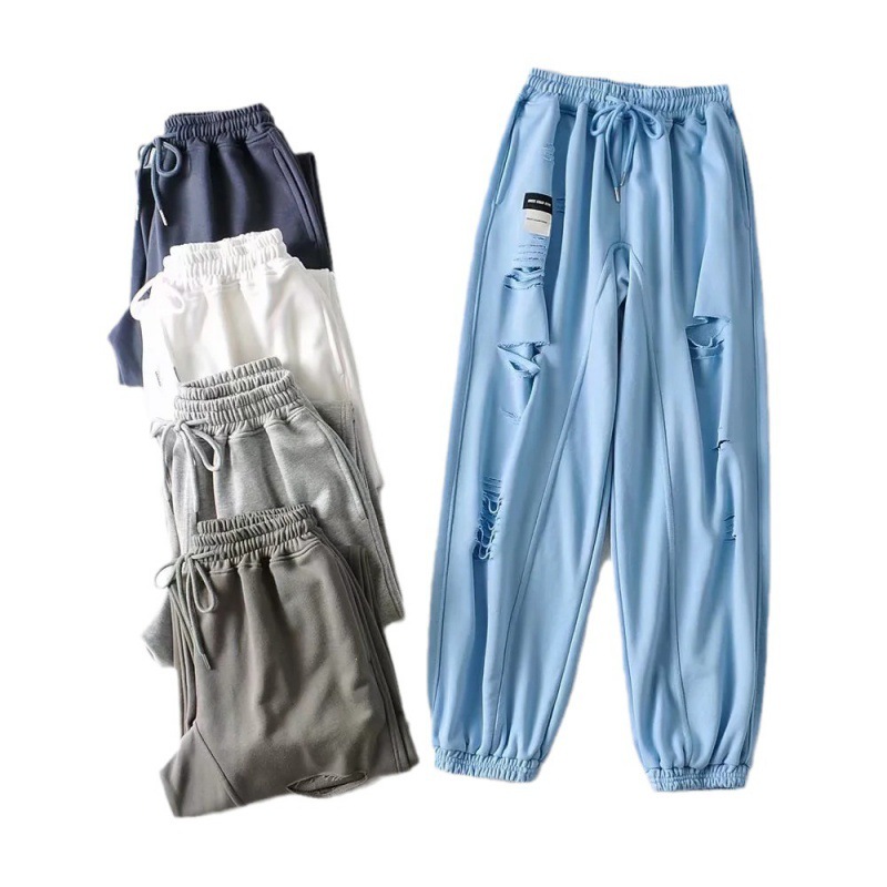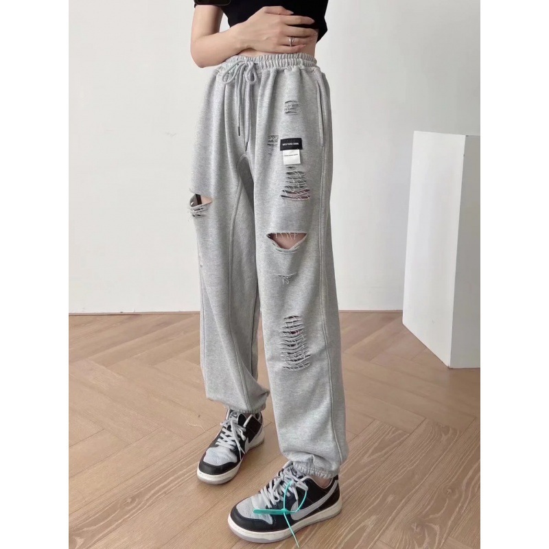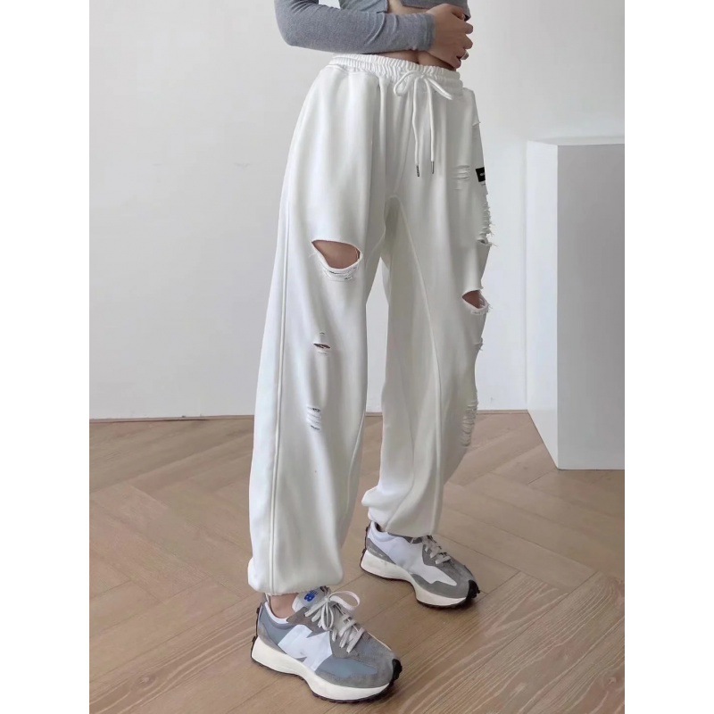 European and American Spring and Autumn new women’s letter labeling loose drawstring ankle-tied pants solid color sports high waist walking casual bathroom
