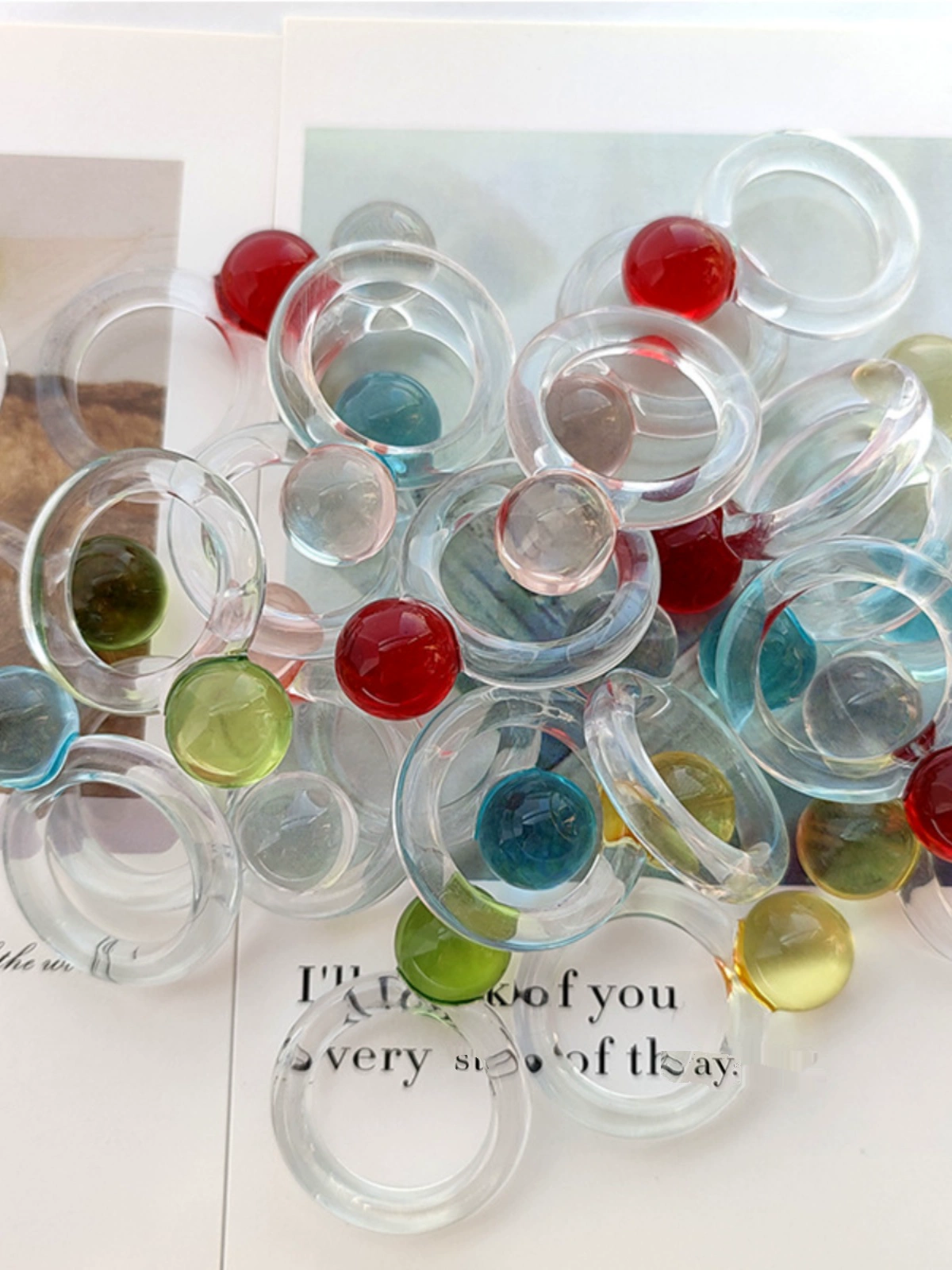 European and American spring and summer new acrylic resin ring candy glass ball transparent ring ring style cross-border