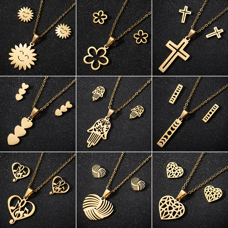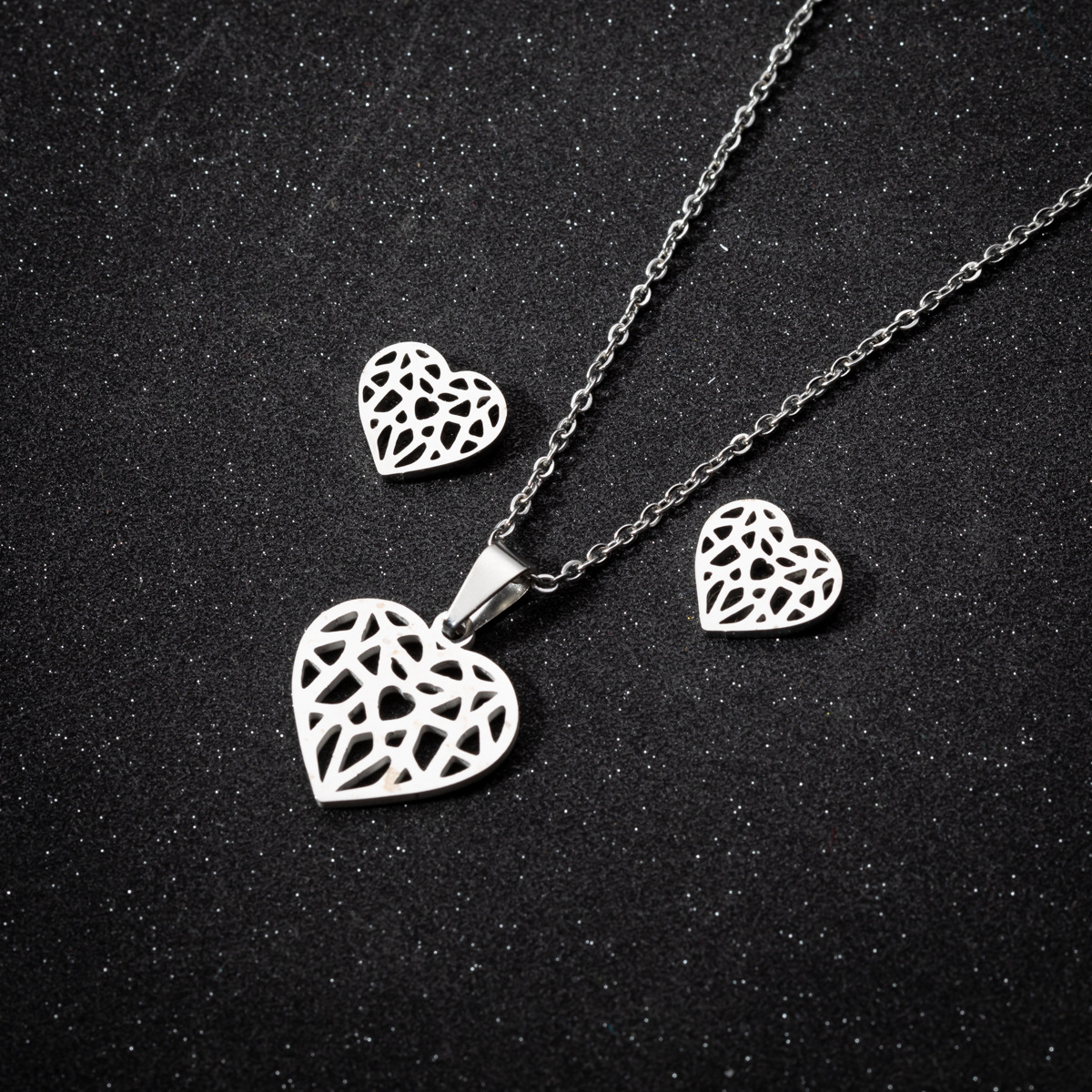 European and American Stainless Steel Geometric Simple Pendant Necklace Fashion Personality Heart-shaped Note Cross Earrings Three-piece Set