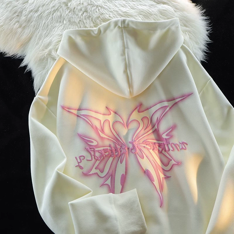 | nameOriginal | European and American street fashion brand butterfly print hooded sweatshirt for men and women in autumn and winter loose couple college style cardigan jacket |