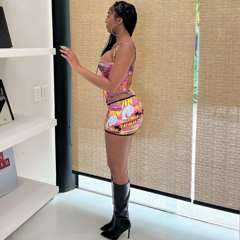 | nameOriginal | European and American Style 2023 Summer Fashion Printed Sexy Wrap Chest Halter Strap Belly Vest Hip Miniskirt Set |
