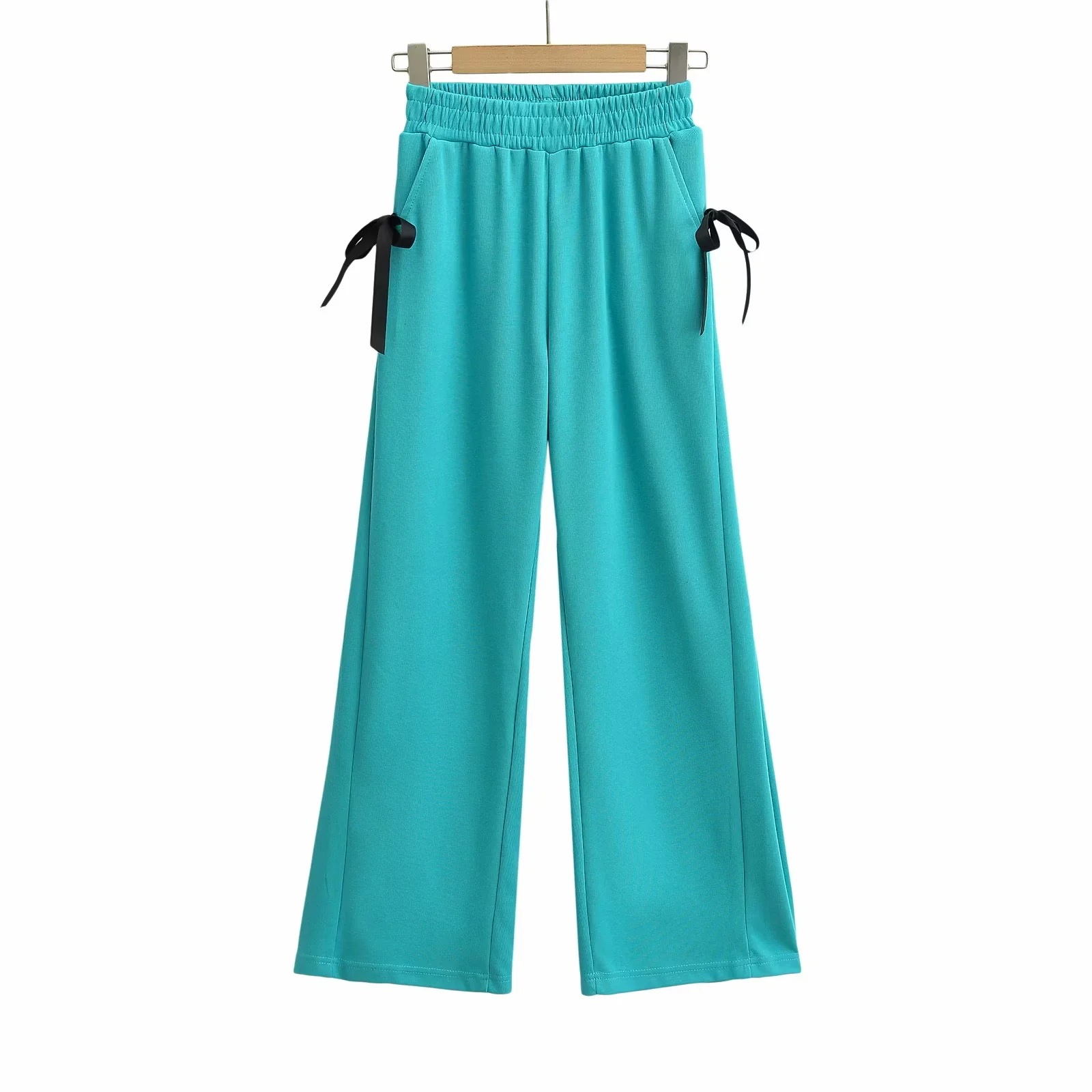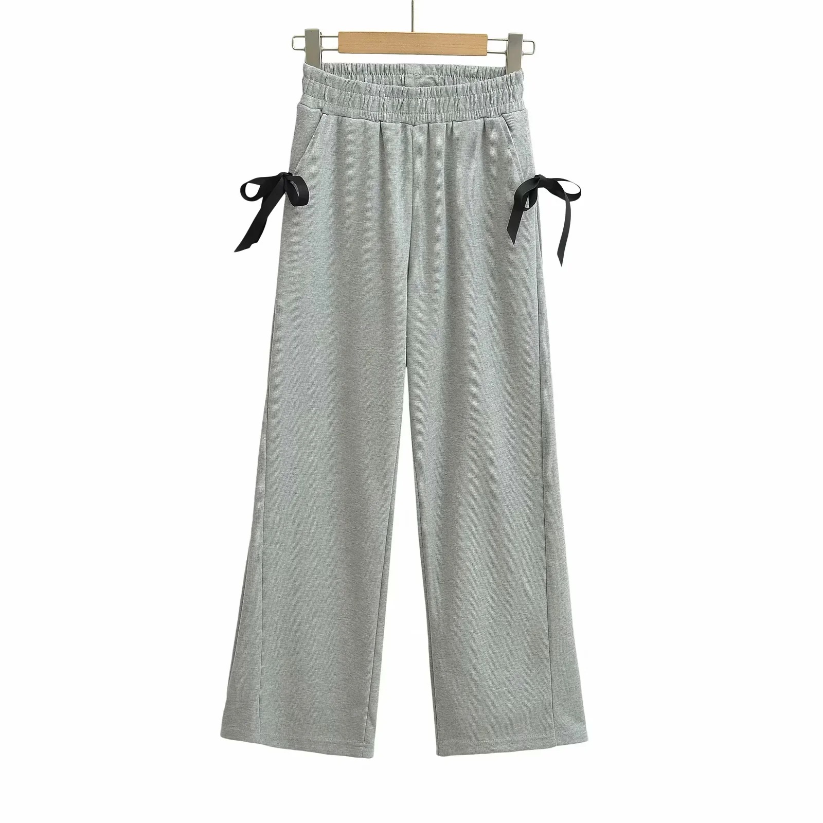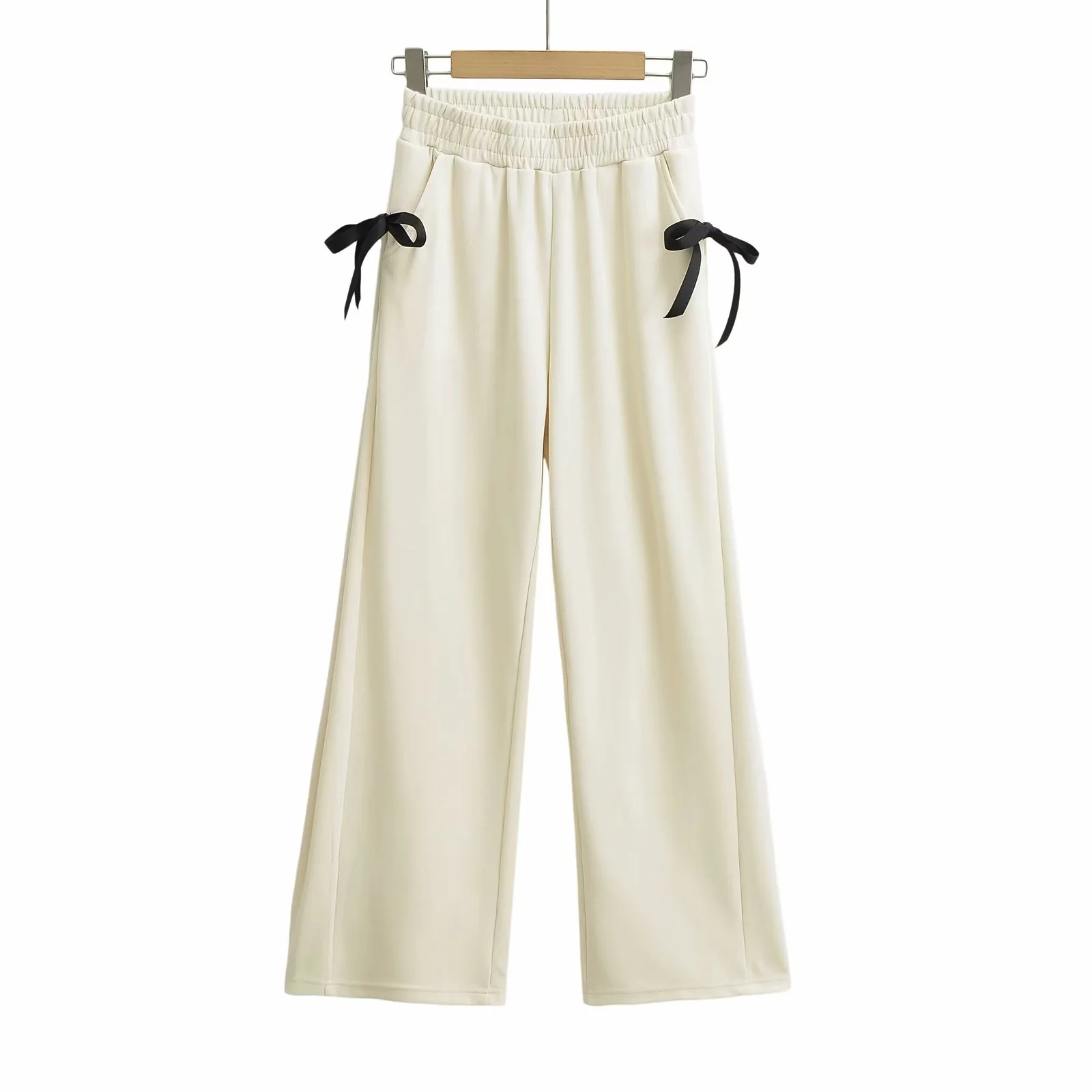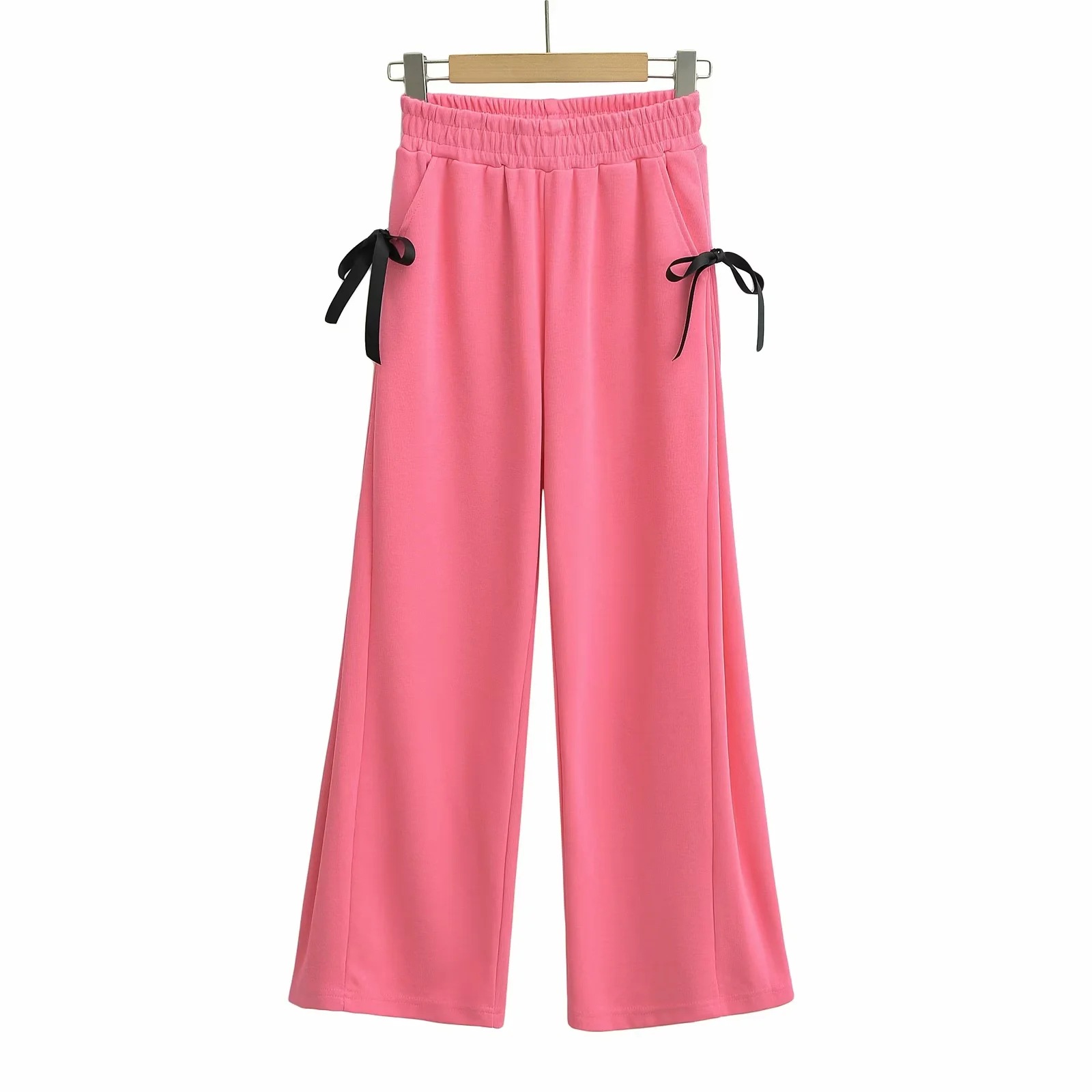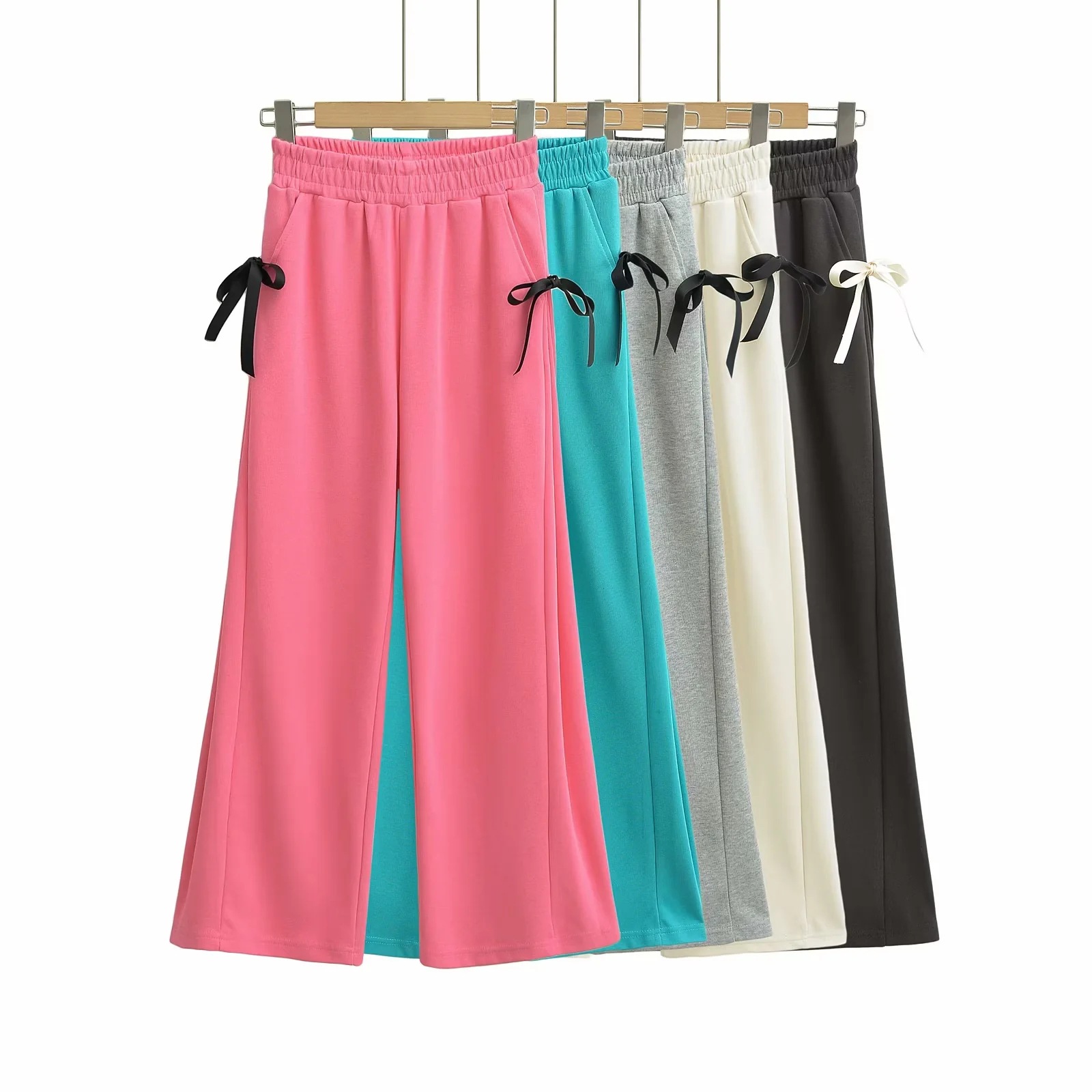 European and American style 2024 new style personality design side bow decoration elastic waist loose pants casual trousers