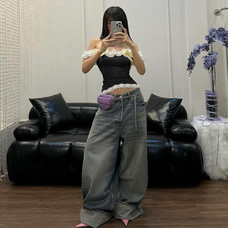 European and American Style 2024 Spring and Summer Women’s New Sweet and Spicy Pure Desire Lace Collar Pleated Sexy Camisole Small Vest for Women