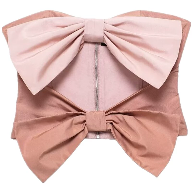 | nameOriginal | European and American Style 2024 Summer New Style Women's Bow Decorated Open Design Taffeta Top 3423288 |