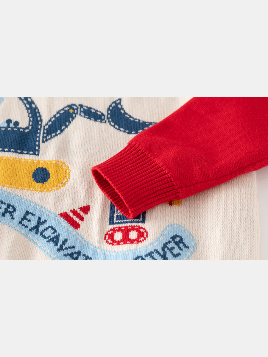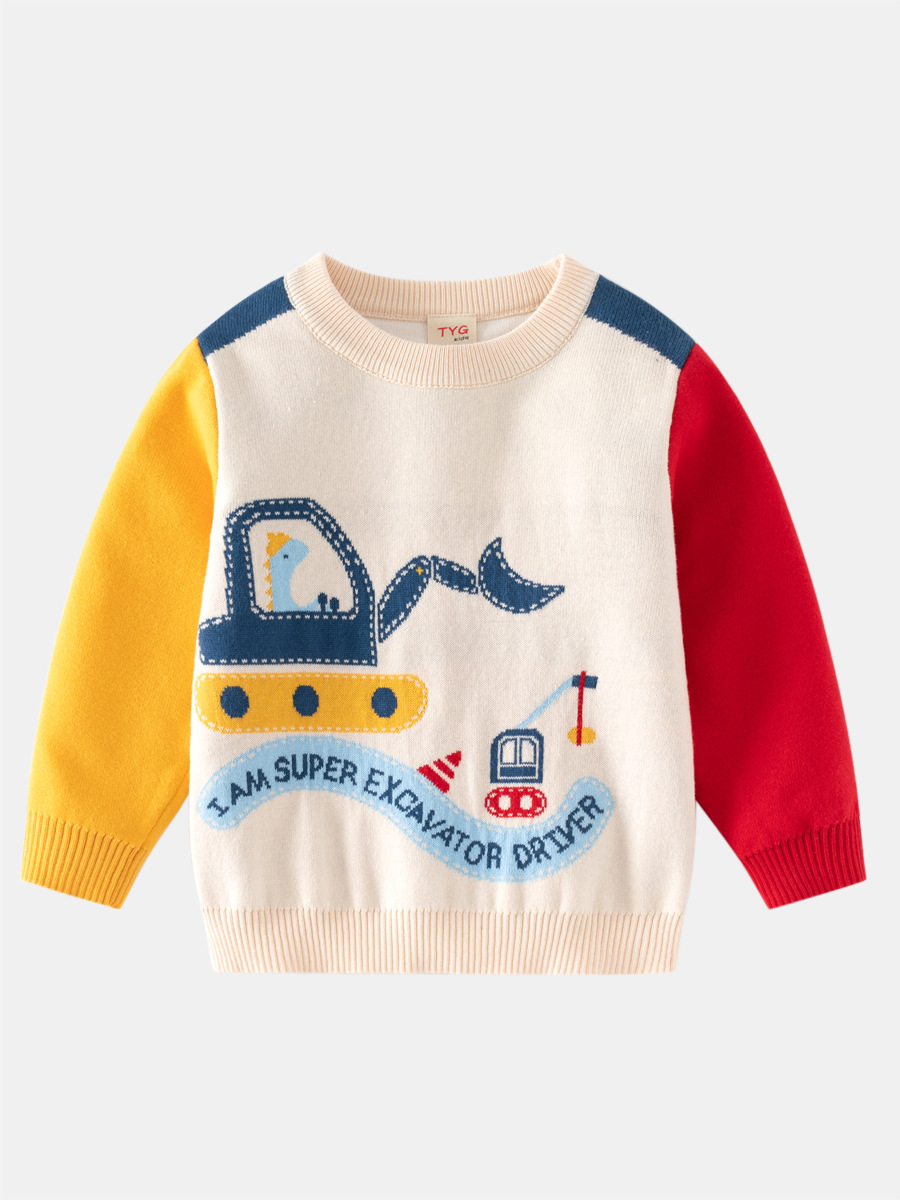 | nameOriginal | European and American style children's clothing boys contrast color sleeve wool top baby cartoon dinosaur digging machine sweater children's warm sweater |