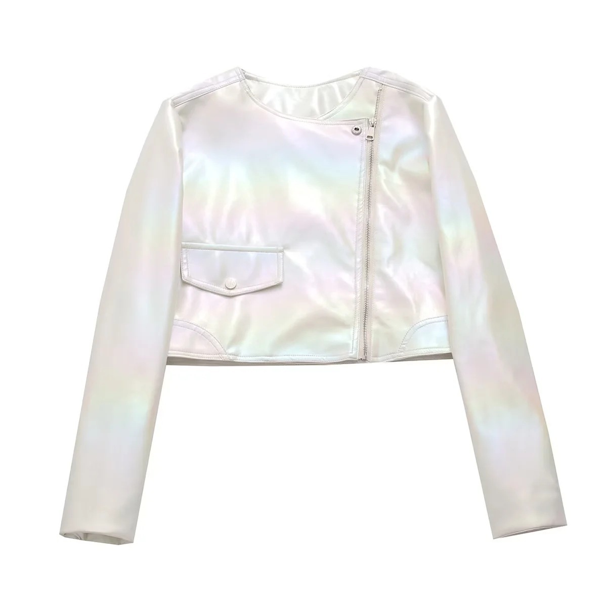 European and American style colorful pu leather jacket women's autumn new hot girl feeling zipper lapel short leather jacket for women