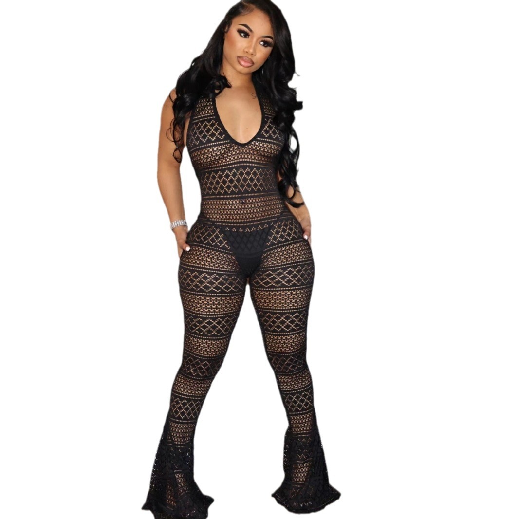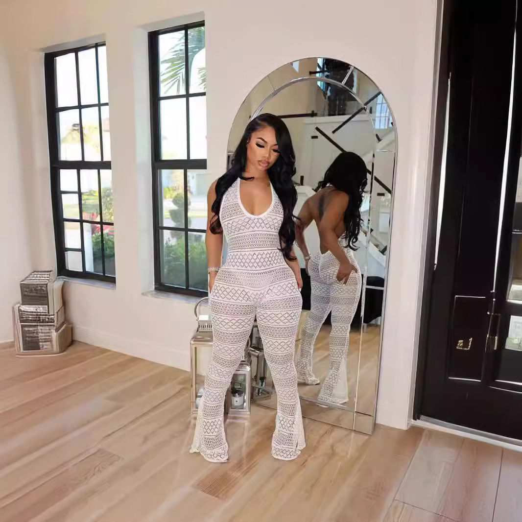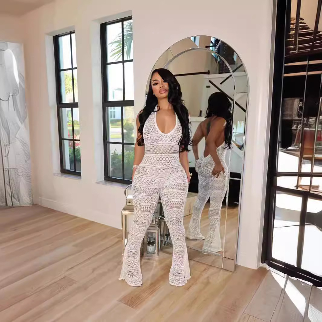 | nameOriginal | European and American style cross-border 2024 new women's solid color summer sexy slim hollow design jumpsuit suit |