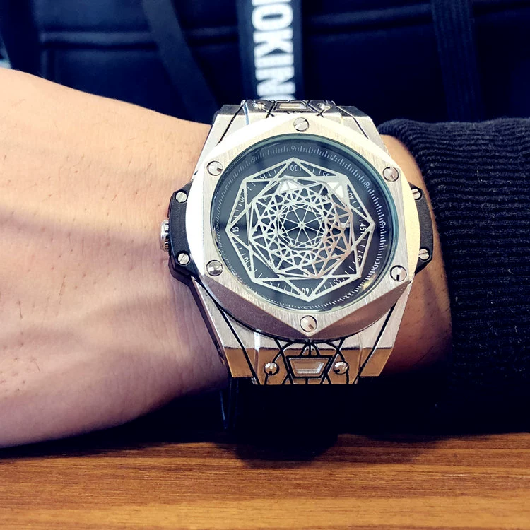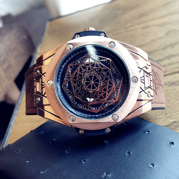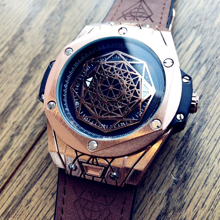 European and American style fashion trend men's niche watch student watch male large dial leather watch personalized quartz watch male