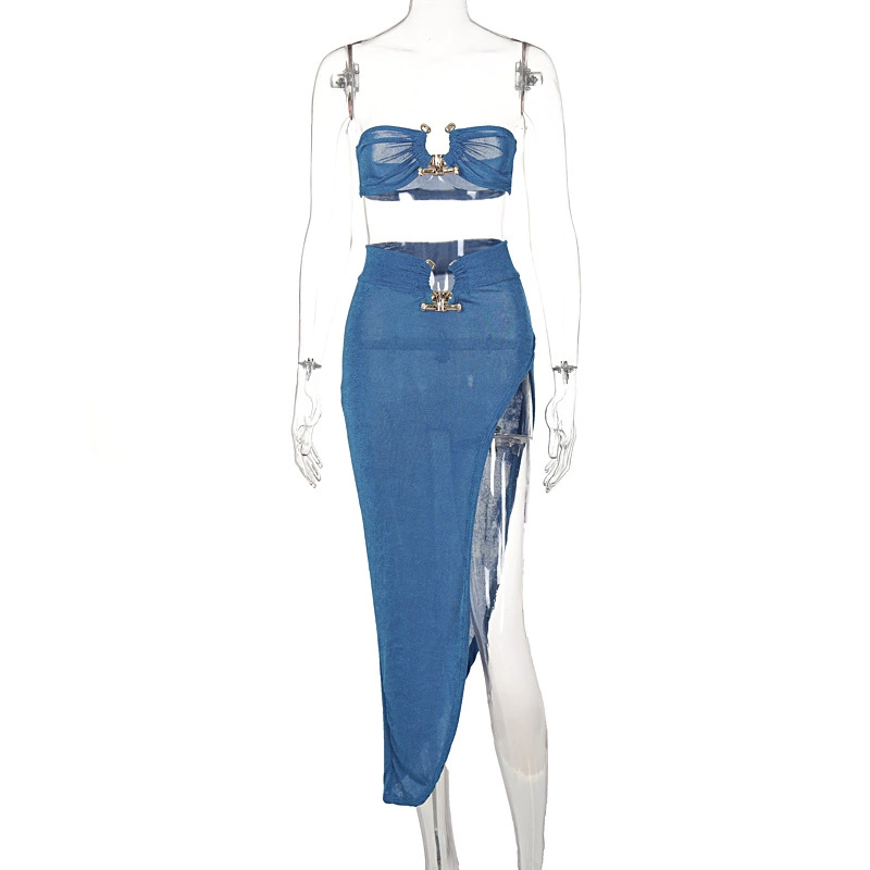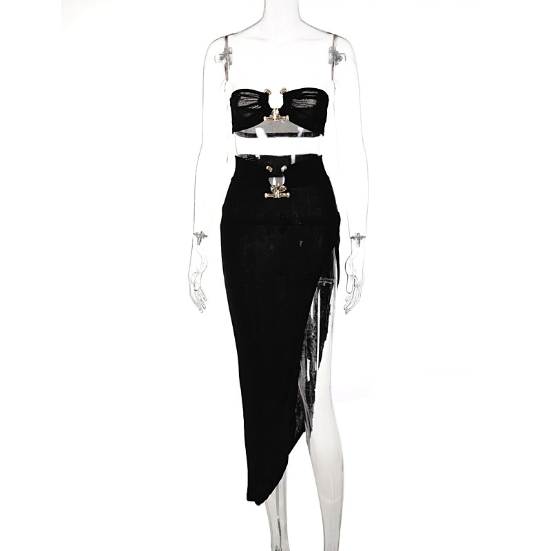 | nameOriginal | European and American style fashionable and sexy new long skirt with exposed navel and spliced tube top, light and mature slit, hip-covering skirt suit, women's skirt |