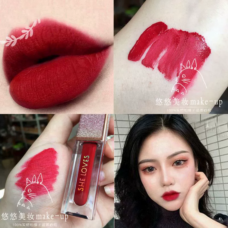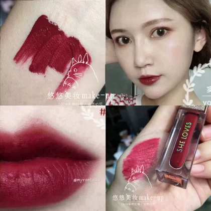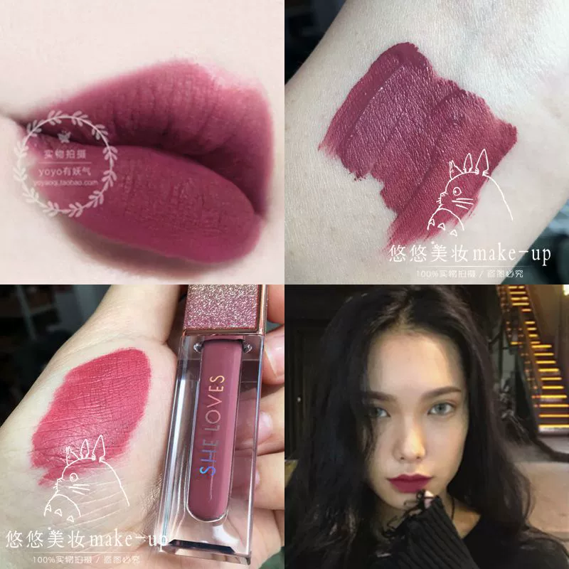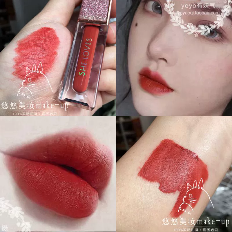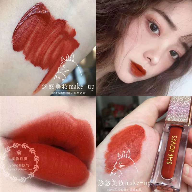 | nameOriginal | European and American style peach milk tea pink almond bean paste daily pink orange matte matte lip glaze long-lasting and non-fading |