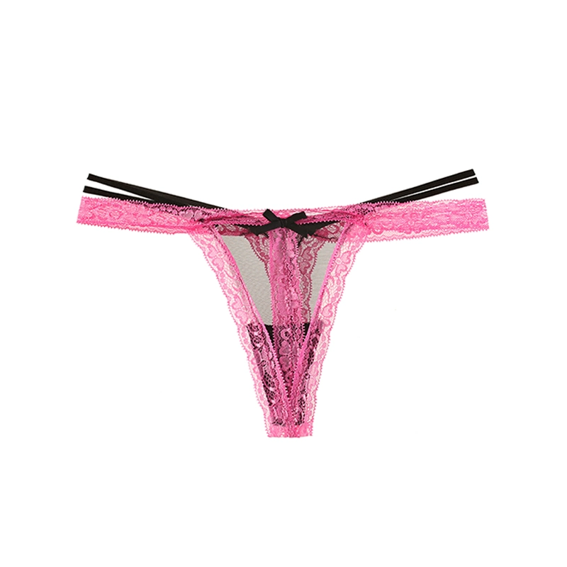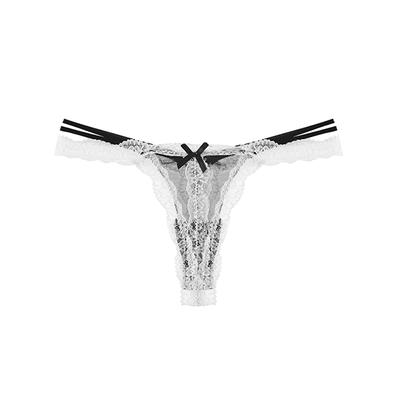 European and American style sexy lace thong women's thin pure lusty bow contrast color thin strap invisible see-through women's underwear