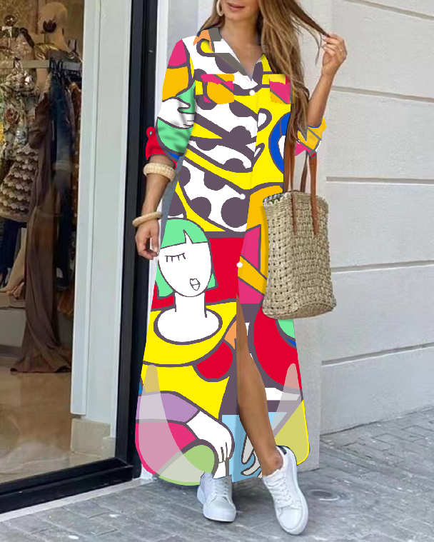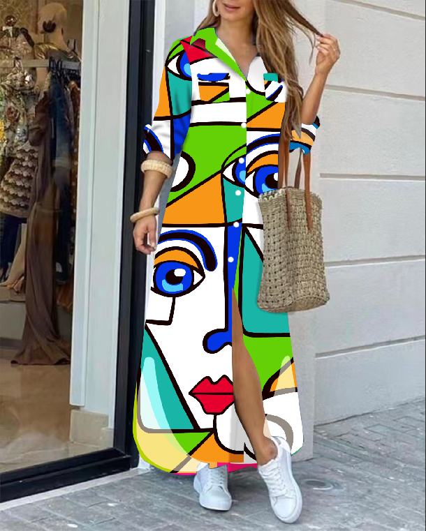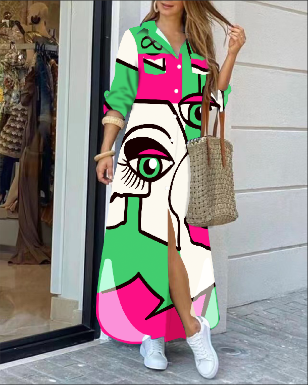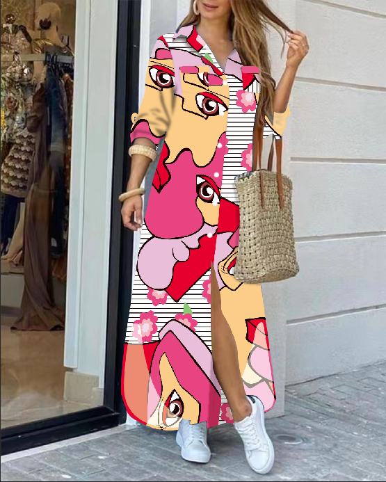 European and American style spring and autumn new eBay AliExpress fashionable long-sleeved printed shirt dress long dress for women DRESS