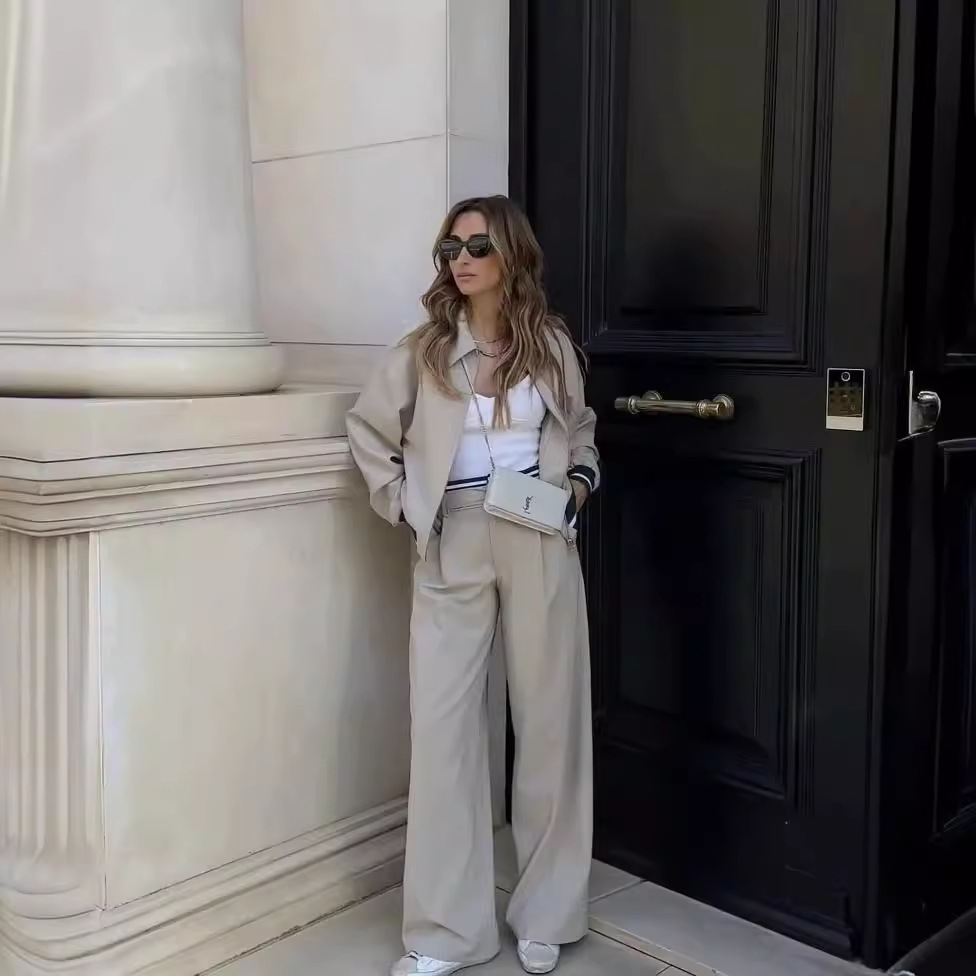 European and American style stitching green thread zipper coat women’s 2024 autumn new lapel loose women’s jacket