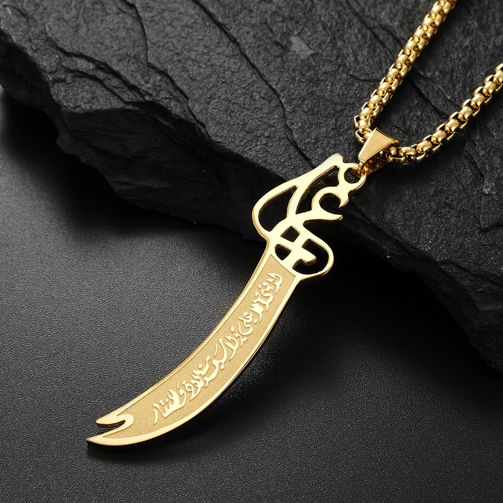 | nameOriginal | European and American style titanium steel hollow engraved knife necklace plated 18K gold men's pendant pendant factory spot wholesale |