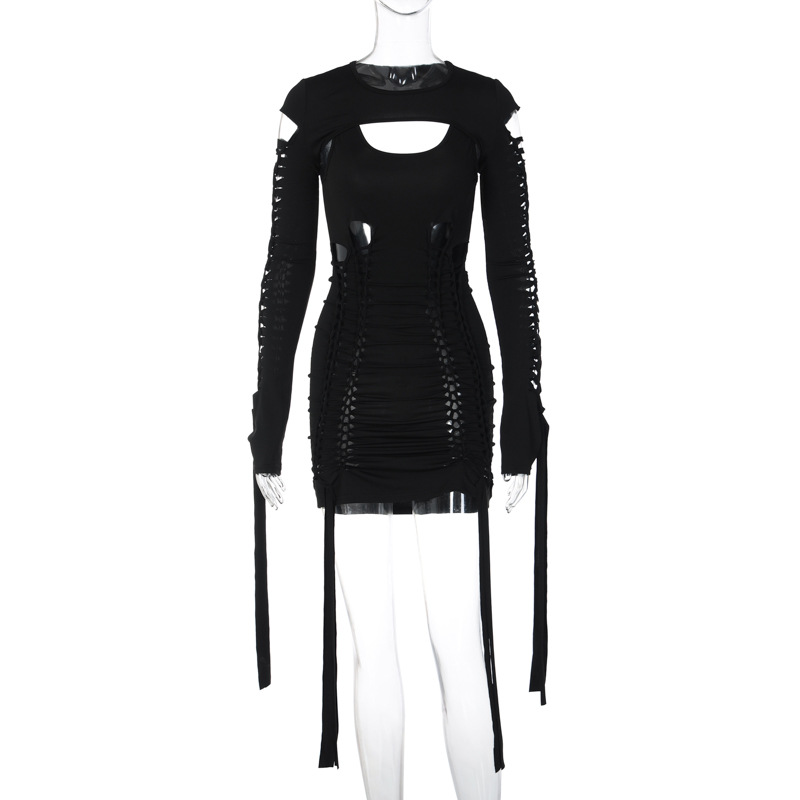 European and American style women’s 2022 Winter new fashion sexy backless hollow dress long sleeve shawl set Wholesale