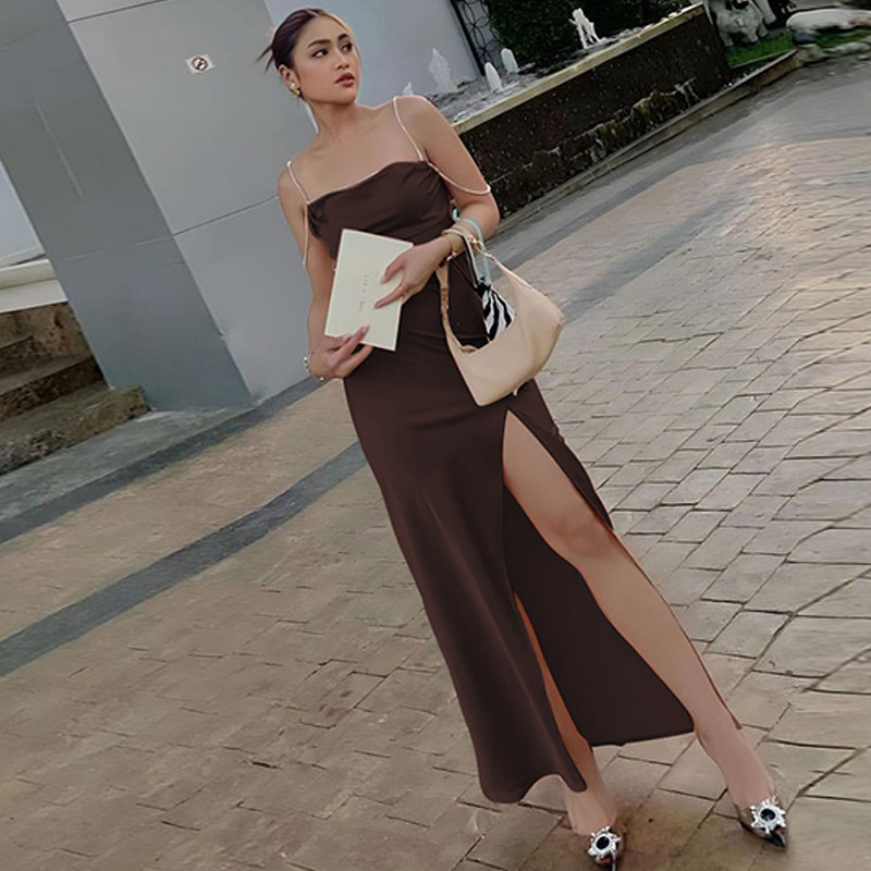 European and American style women’s 2023 spring and summer new fashion sexy split backless diamond chain suspender dress wholesale