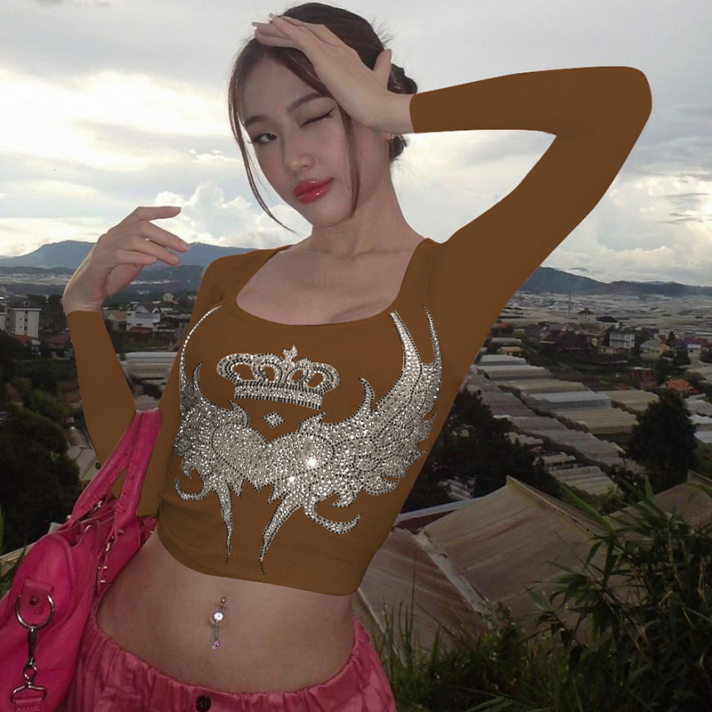 | nameOriginal | European and American style women's 2023 Summer new fashion hot girl hot drill U-collar slim long sleeve top women's foreign trade Wholesale |