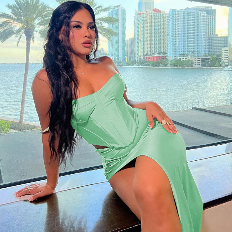 | nameOriginal | European and American style women's 2023 Summer new sexy Fishbone strap tube top Slim split skirt set Wholesale |