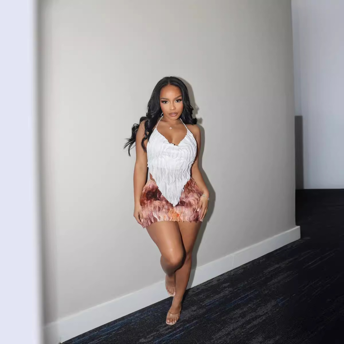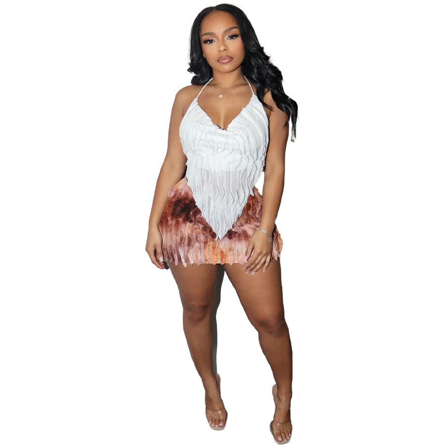 | nameOriginal | European and American style women's 2024 spring new sexy sleeveless halter lace-up hollow top sheath small skirt suit |