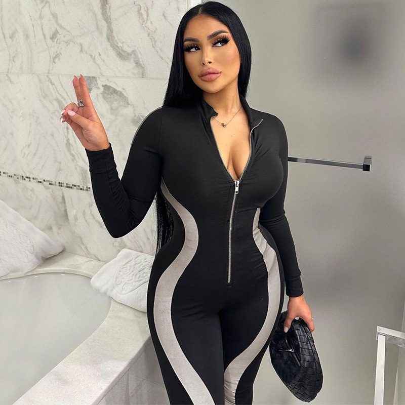 | nameOriginal | European and American style women's clothing 2023 Winter new fashion stitching zipper slim-fit long-sleeved sports yoga jumpsuit wholesale |