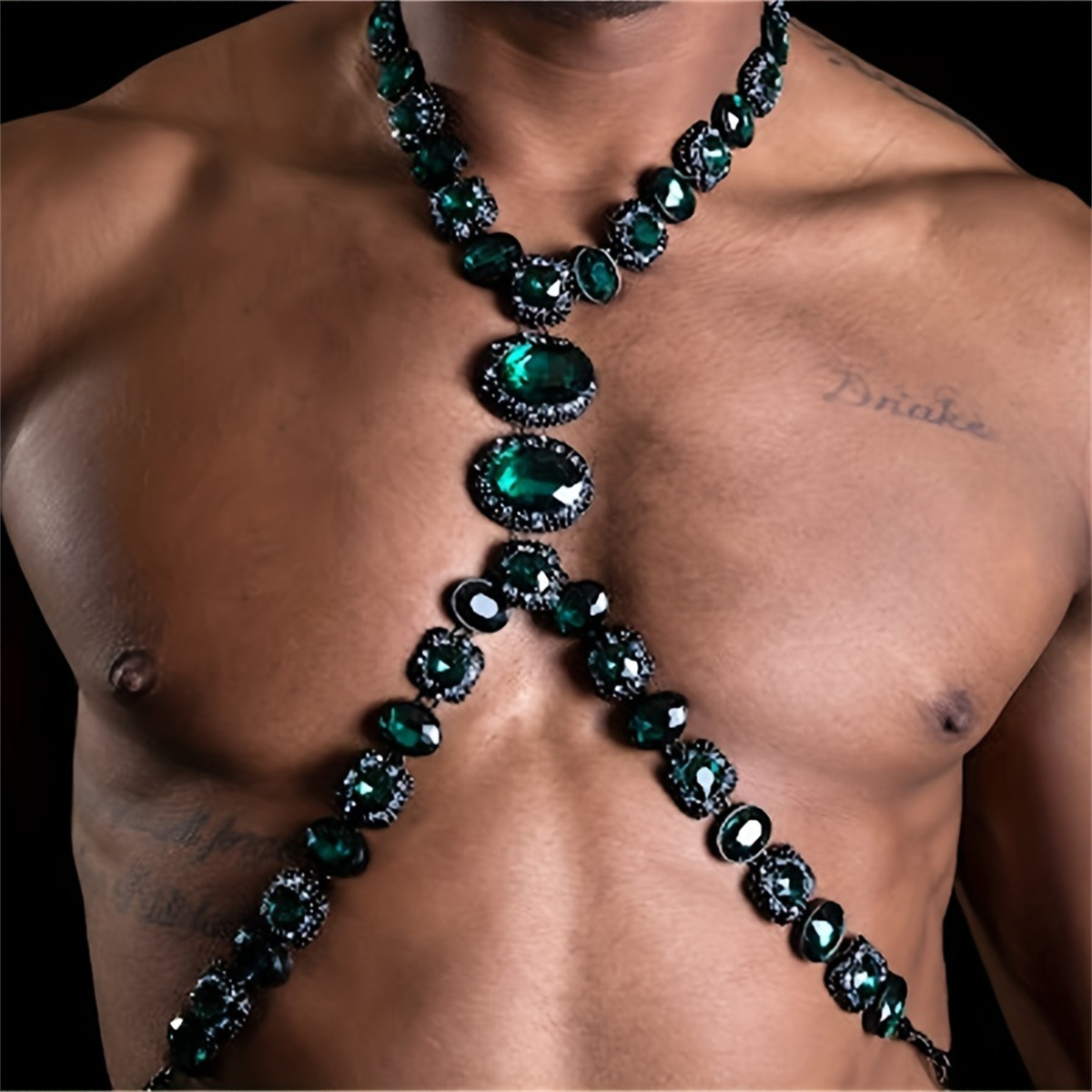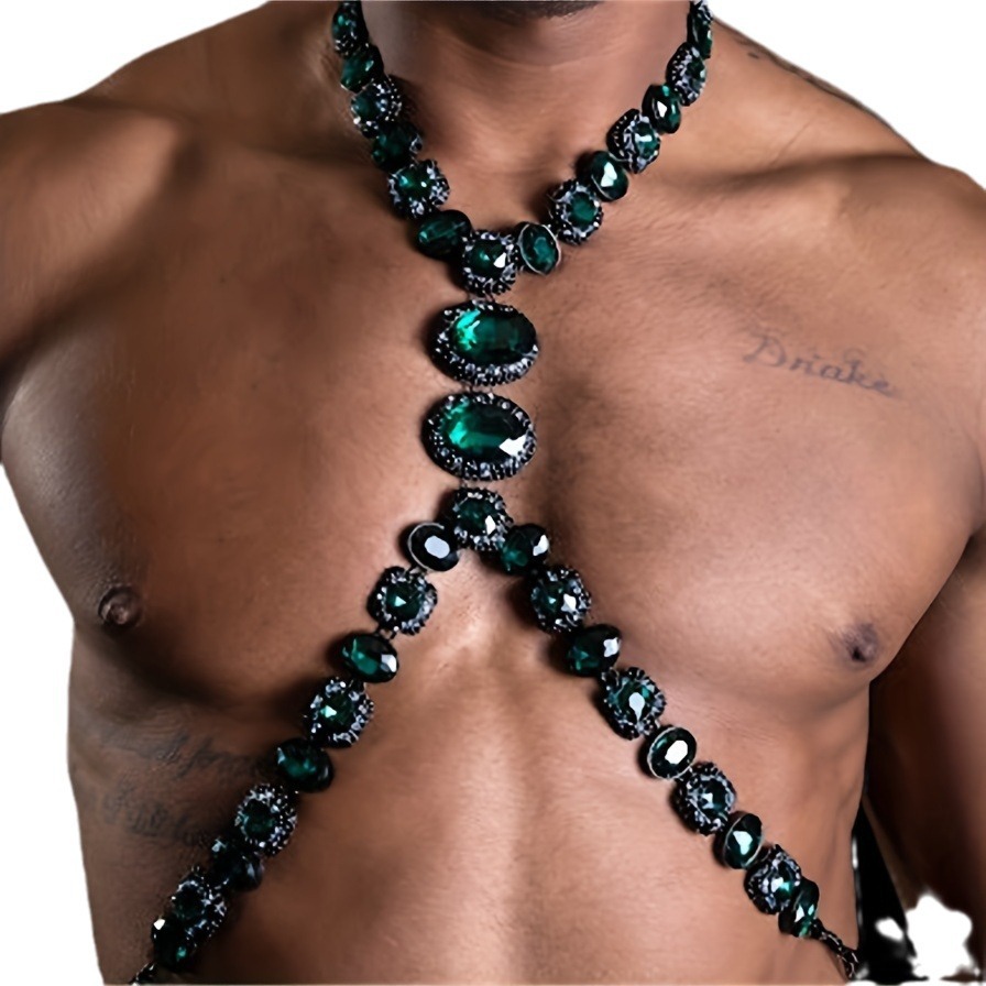 | nameOriginal | European and American summer beach bikini green rhinestone chest chain nightclub party sexy luxury crystal chest chain men |