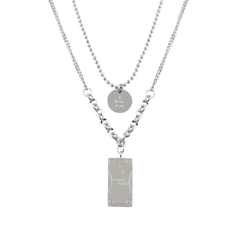 | nameOriginal | European and American summer non-fading steel titanium stainless steel disc love rectangular smiley lock stacked necklace clavicle chain |