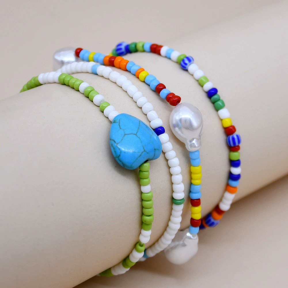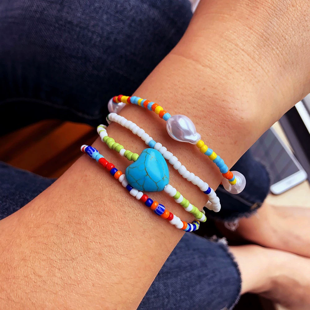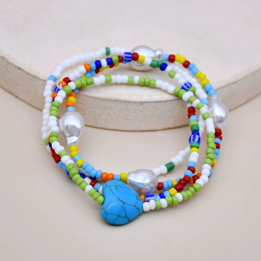 | nameOriginal | European and American summer Southern French style bracelet colorful beaded artificial pearl love turquoise four rice bead elastic bracelet |