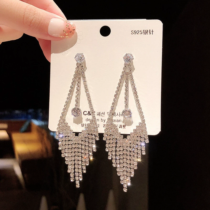 | nameOriginal | European and American tassel earrings with diamonds, personality slimming silver needles |
