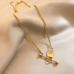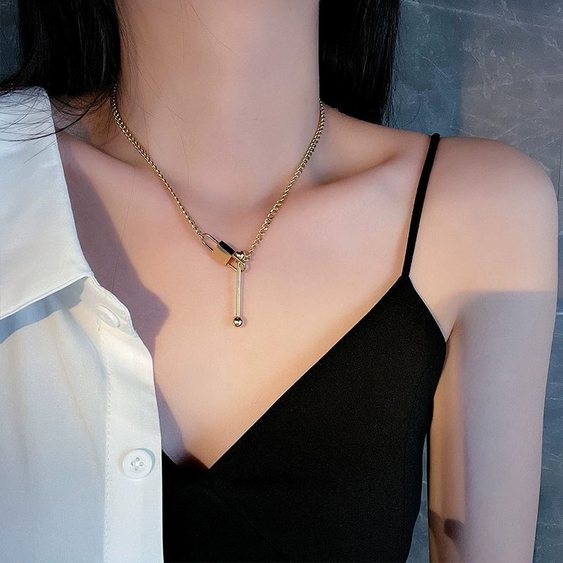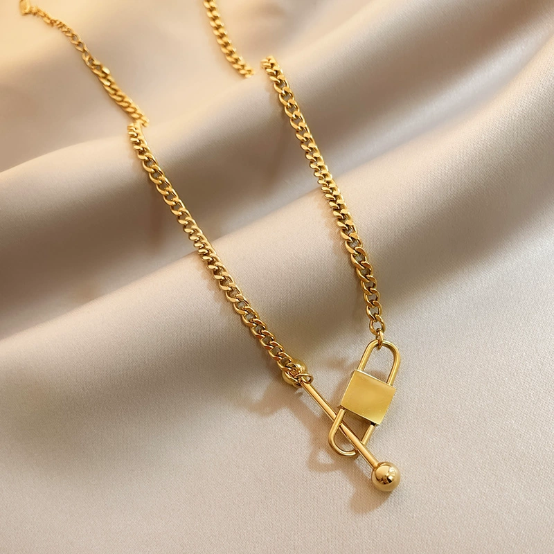 | nameOriginal | European and American thick titanium steel necklace women's summer ins hip-hop non-fading gold-plated jewelry lock pendant internet celebrity clavicle chain |