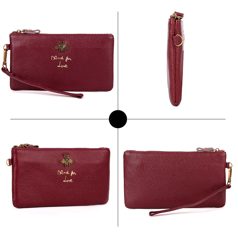 | nameOriginal | European and American Top Layer Cowhide Women's Clutch Bag Temperament Bee Leather Zipper Long Wallet for Mobile Phone Clutch Bag |
