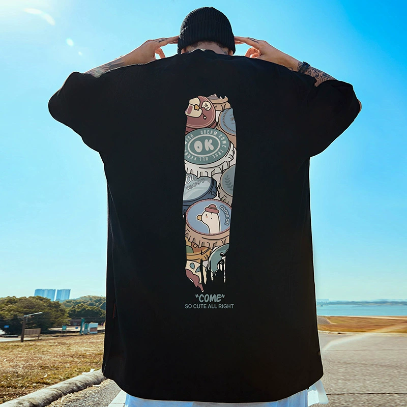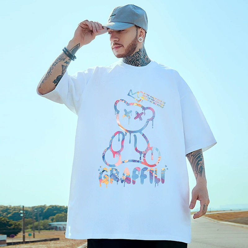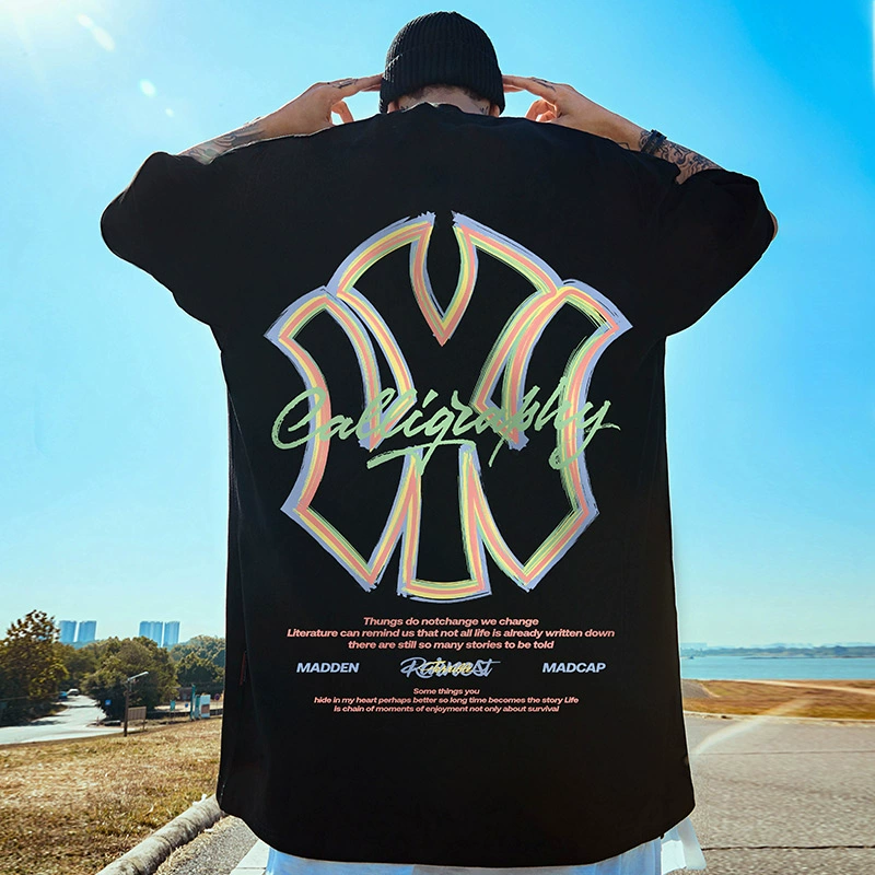 | nameOriginal | European and American trendy brand short-sleeved T-shirts for men, loose plus fat, large size ins trend summer Hong Kong style couple five-point half-sleeved T-shirt |
